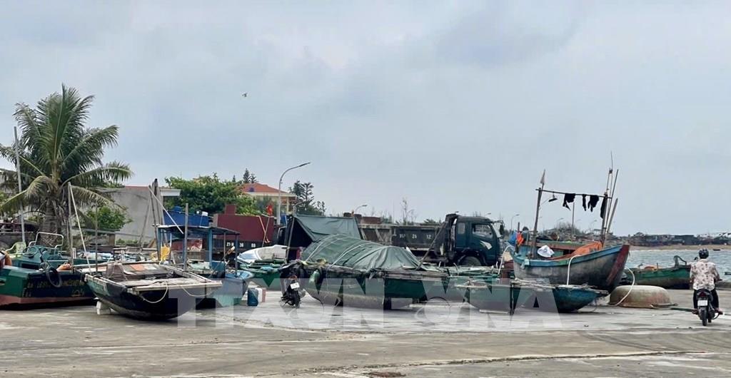Các tàu đánh cá tránh trú bão tại khu vực bến Chanh, phường Quảng Yên, tỉnh Quảng Ninh. Ảnh: Đức Hiếu - TTXVN