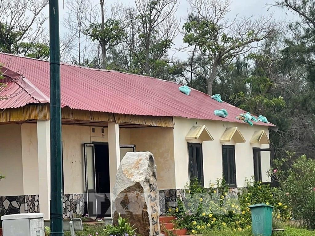 Các dãy nhà đã được gia cố bằng các bao cát đặt trên mái để chống tốc mái. Ảnh: TTXVN phát.