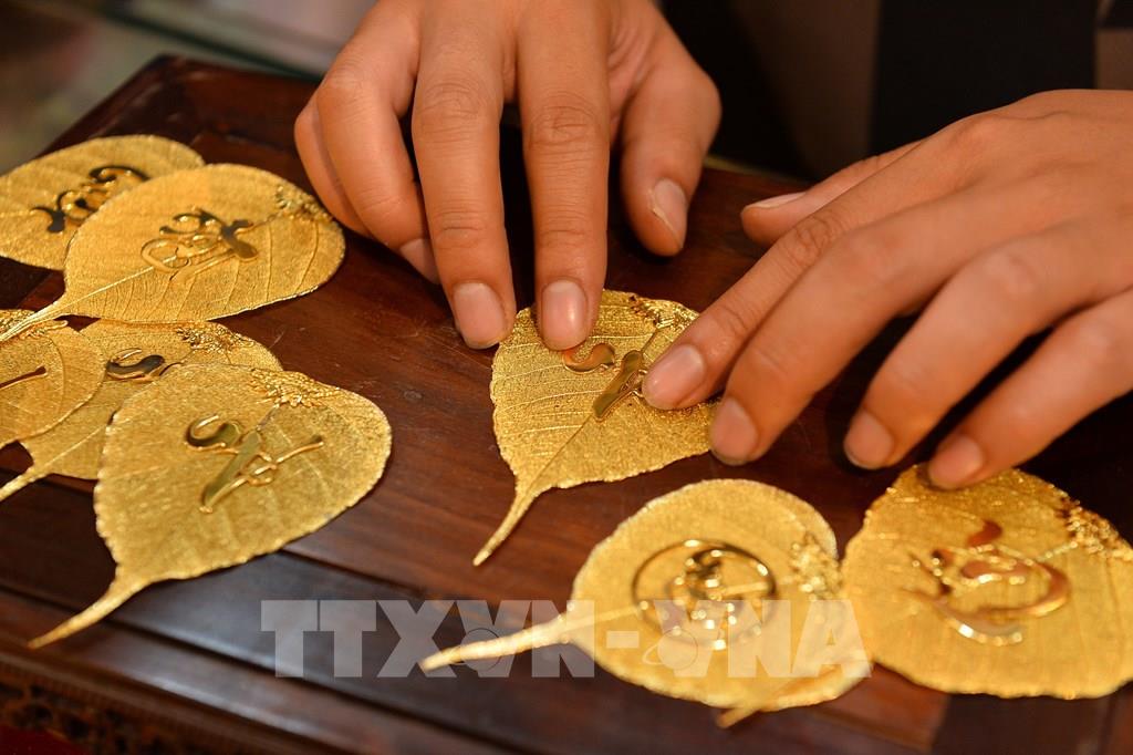 Lá bồ đề mạ vàng rất đặc biệt bởi tất cả những đường vân của xương lá vẫn giữ được nguyên bản, mỏng manh như những sợi tơ có thể nhìn xuyên qua. Ảnh: Minh Đức – TTXVNđược soi sáng, để có thể suy xét mọi việc một cách thấu đáo và cảm nhận được như có Đức Phật luôn ở bên để soi đường, chỉ lối. Với những đóng góp của mình, nghệ nhân quốc gia Nguyễn Đức Bằng được Viện Nghiên cứu Văn hóa Phương Đông trao Bảng vàng lưu danh “Nghệ nhân Văn hóa tiêu biểu Đông Nam Á- Việt Nam” năm 2021. Ảnh: Minh Đức – TTXVN