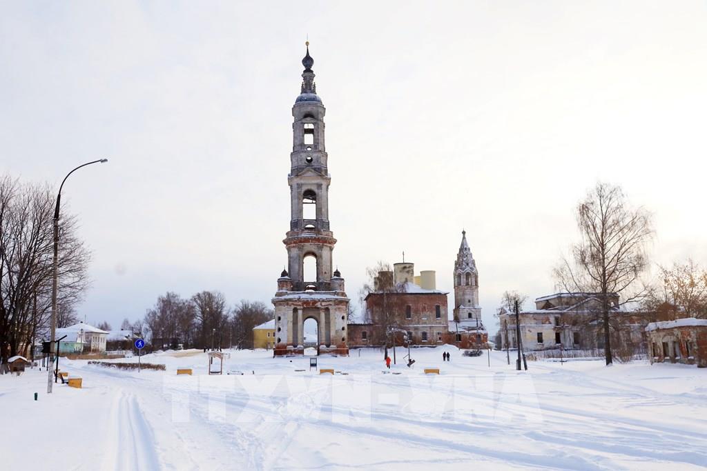 Tháp chuông nhà thờ Nikita Muchenika cao 93,87 mét, bị bỏ hoang, nhưng vẫn nằm trong Top 5 tháp chuông nhà thờ cao nhất ở Nga hiện nay. Ảnh: Trần Hiếu - PV TTXVN