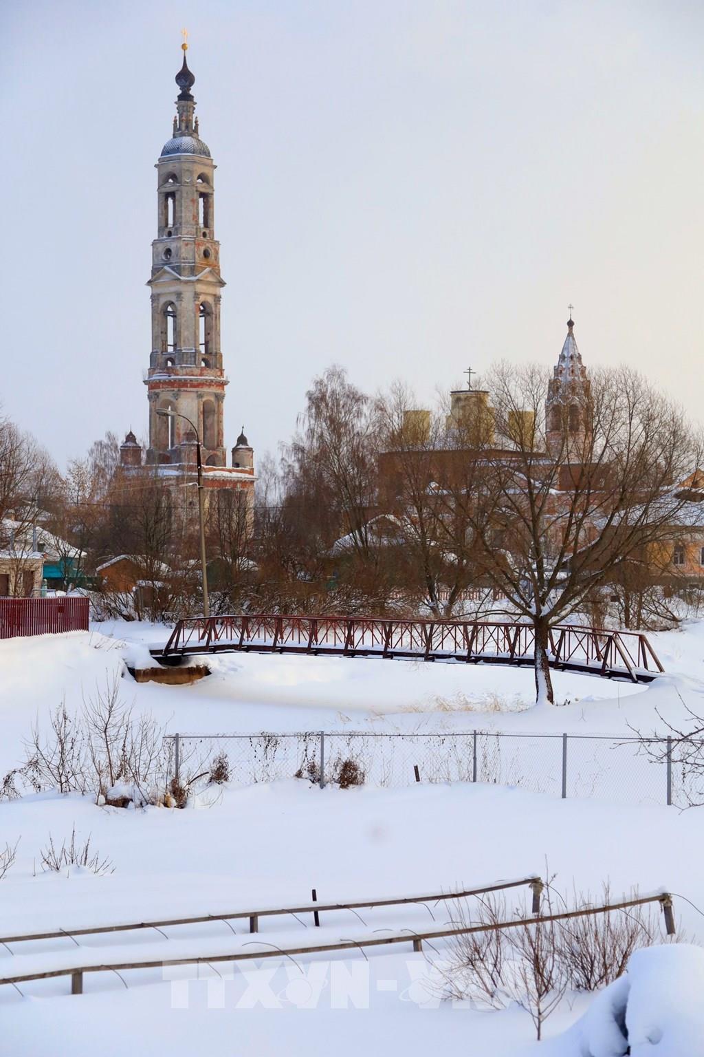 Tháp chuông cổ nằm trong quần thể kiến trúc đền thờ Nikita Muchenika được xây dựng từ thế kỷ 17-18. Ảnh: Trần Hiếu - PV TTXVN