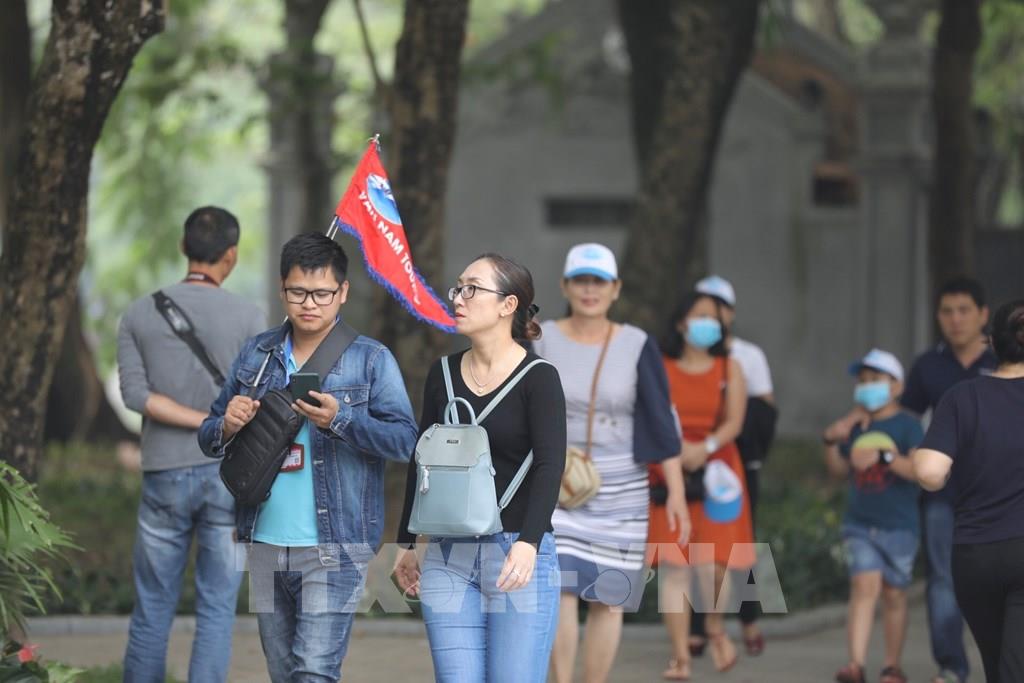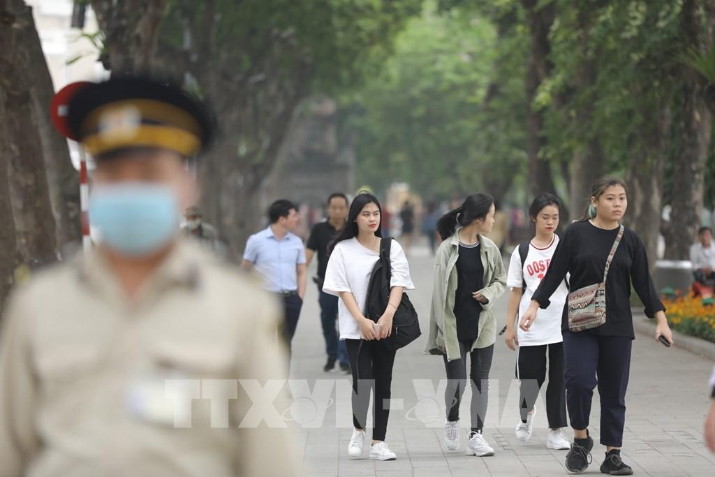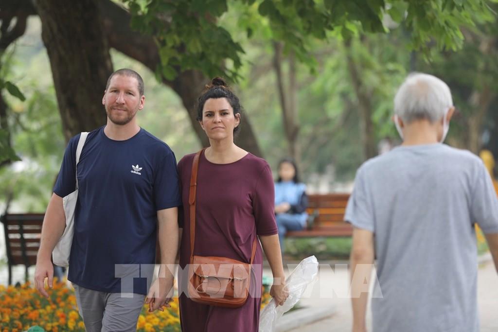 Một số du khách nước ngoài cũng chủ quan không đeo khẩu trang nơi công cộng. Ảnh: Minh Quyết - TTXVN