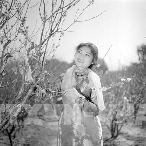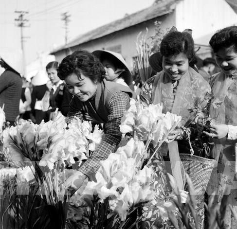 Cô gái Hà Nội tại làng hoa Nhật Tân, năm 1963. Ảnh: TTXVN