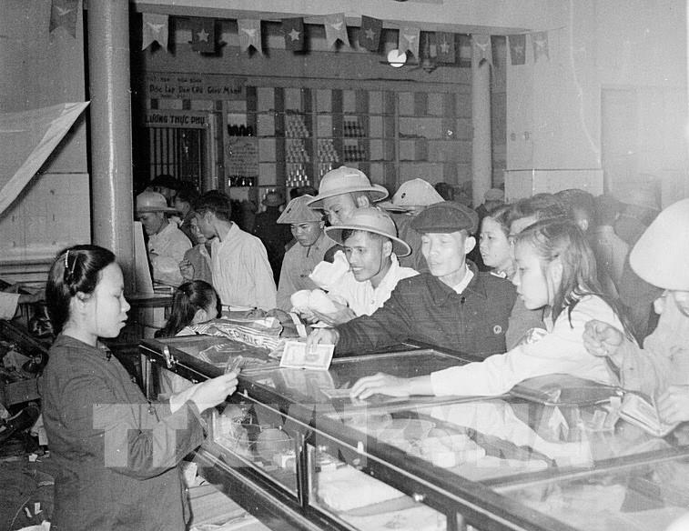 Cửa hàng mậu dịch phục vụ Tết Bính Thân 1956 tại Hà Nội. Ảnh: TTXVN