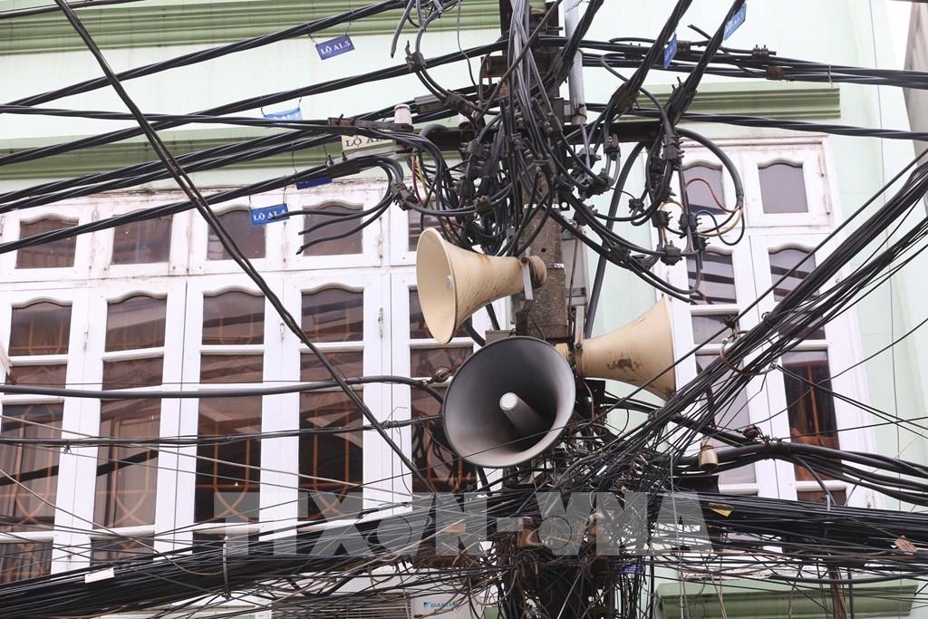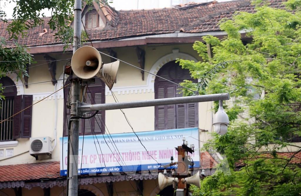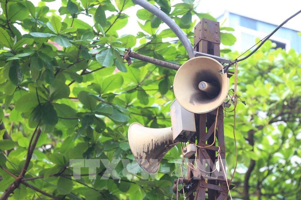 Một cụm loa phường Hàng Mã hàng ngày đưa thông tin về phòng, chống dịch COVID-19 lan tỏa đến từng ngõ xóm, len lỏi tới mỗi gia đình. Ảnh: Anh Tuấn – TTXVN