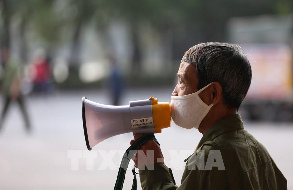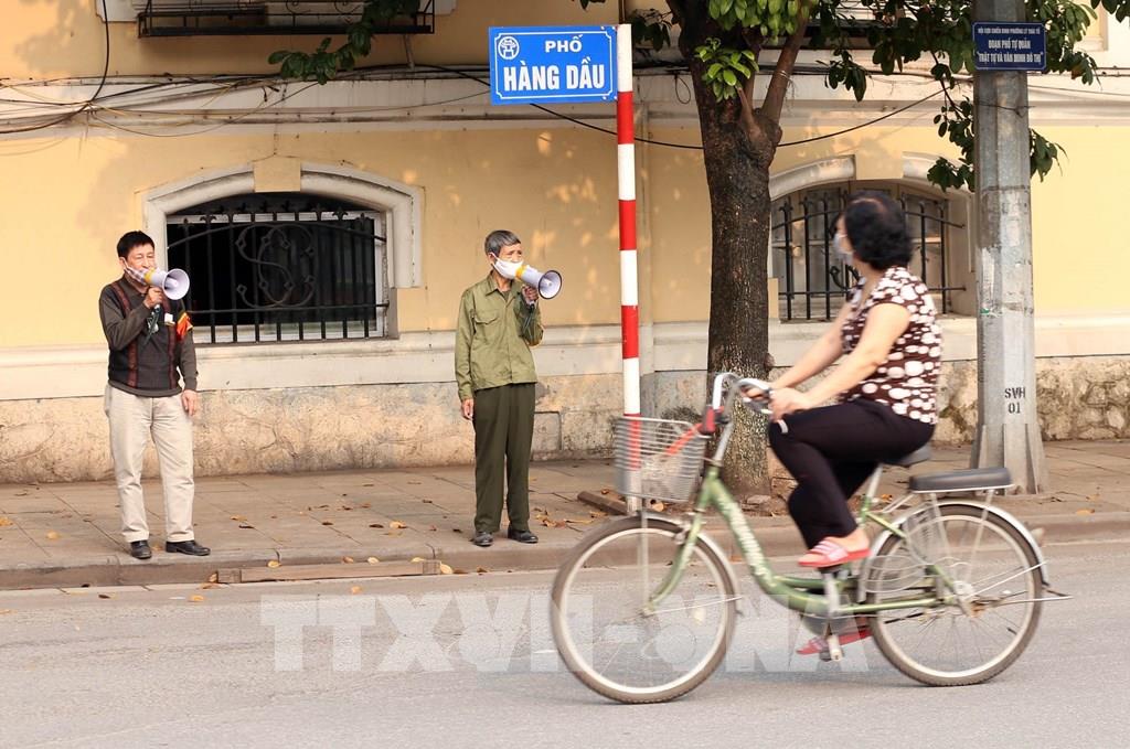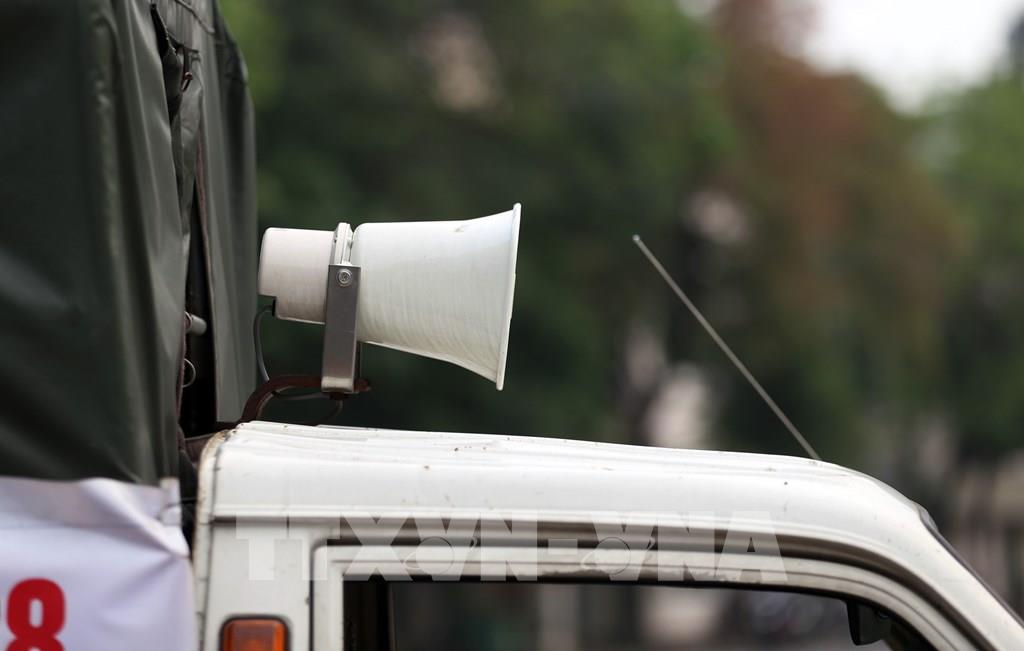 Lực lượng chức năng phường Hàng Trống sử dụng loa thùng hàng ngày đưa thông tin về phòng, chống dịch COVID-19. Ảnh: Anh Tuấn – TTXVN