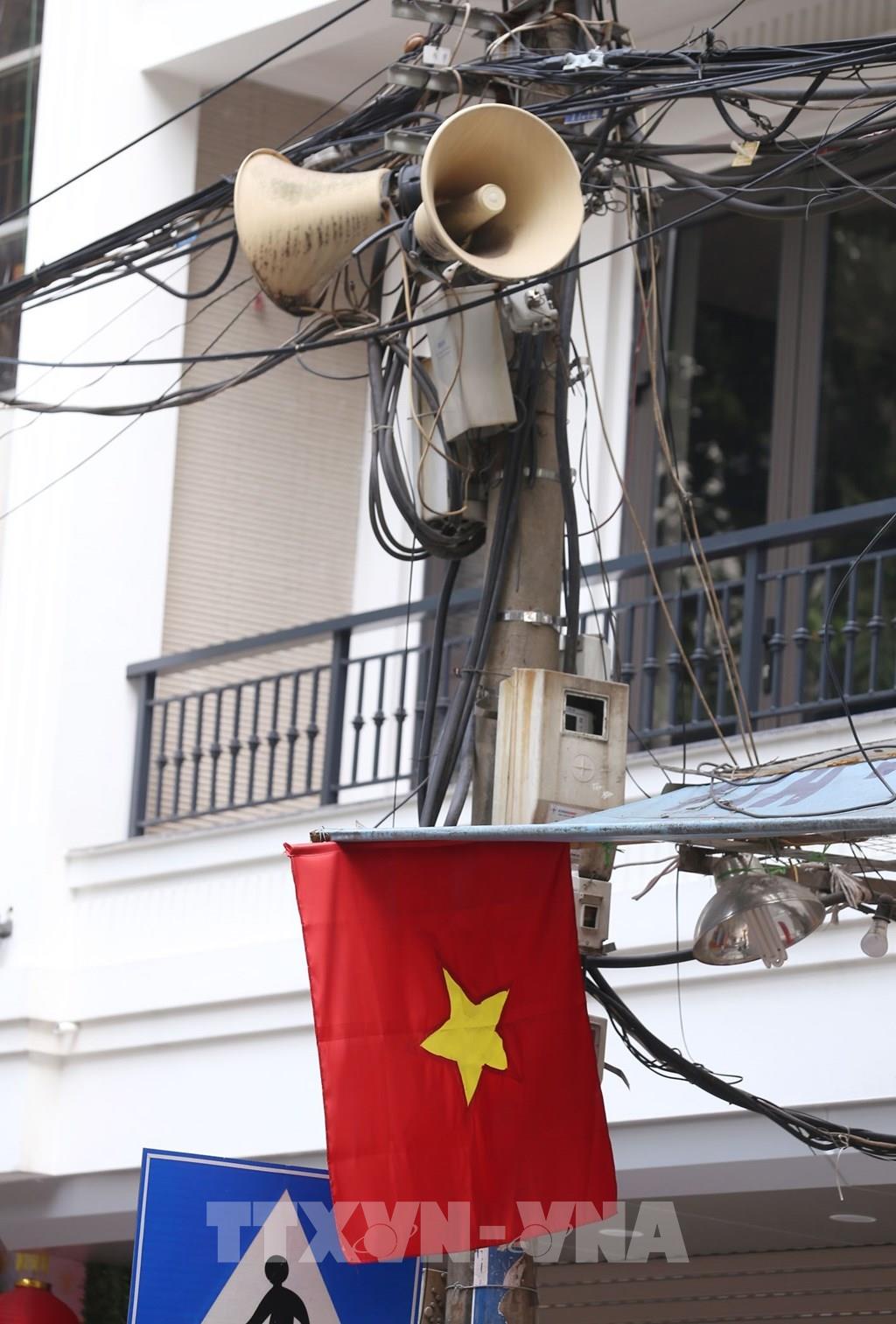 Một cụm loa trên phố Lò Sũ thuộc phường Lý Thái Tổ hàng ngày đưa thông tin về phòng, chống dịch COVID-19 lan tỏa đến từng ngõ xóm, len lỏi tới mỗi gia đình. Ảnh: Anh Tuấn – TTXVN