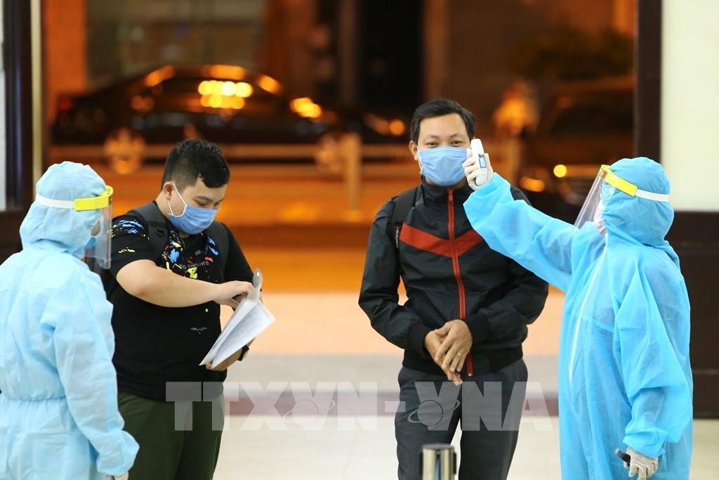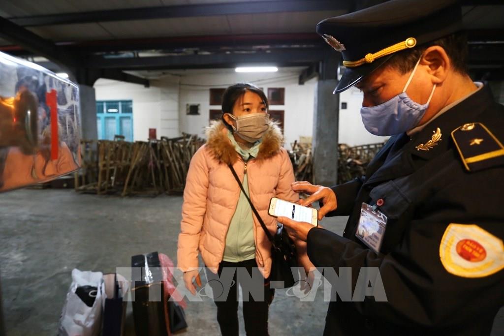 Tất cả hành khách khi ra tàu sẽ được kiểm tra thân nhiệt. Ảnh: Minh Quyết - TTXVN