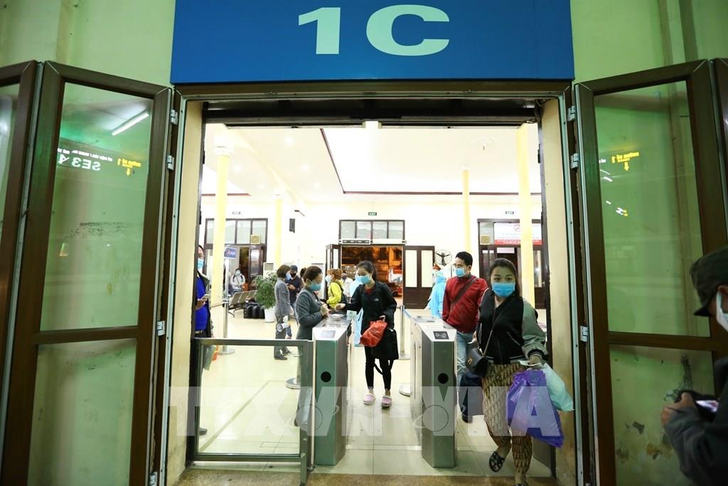 Hành khách qua cửa soát vé, chuẩn bị lên tàu. Ảnh: Minh Quyết - TTXVN