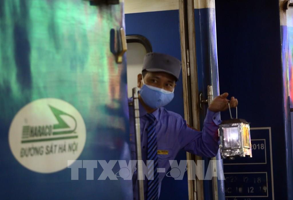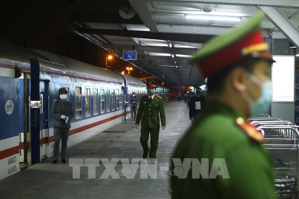 Chuyến tàu SE 3 vận chuyển 264 hành khách rời Hà Nội 19h25 phút ngày 6/4/2020. Ảnh: Huy Hùng - TTXVN
