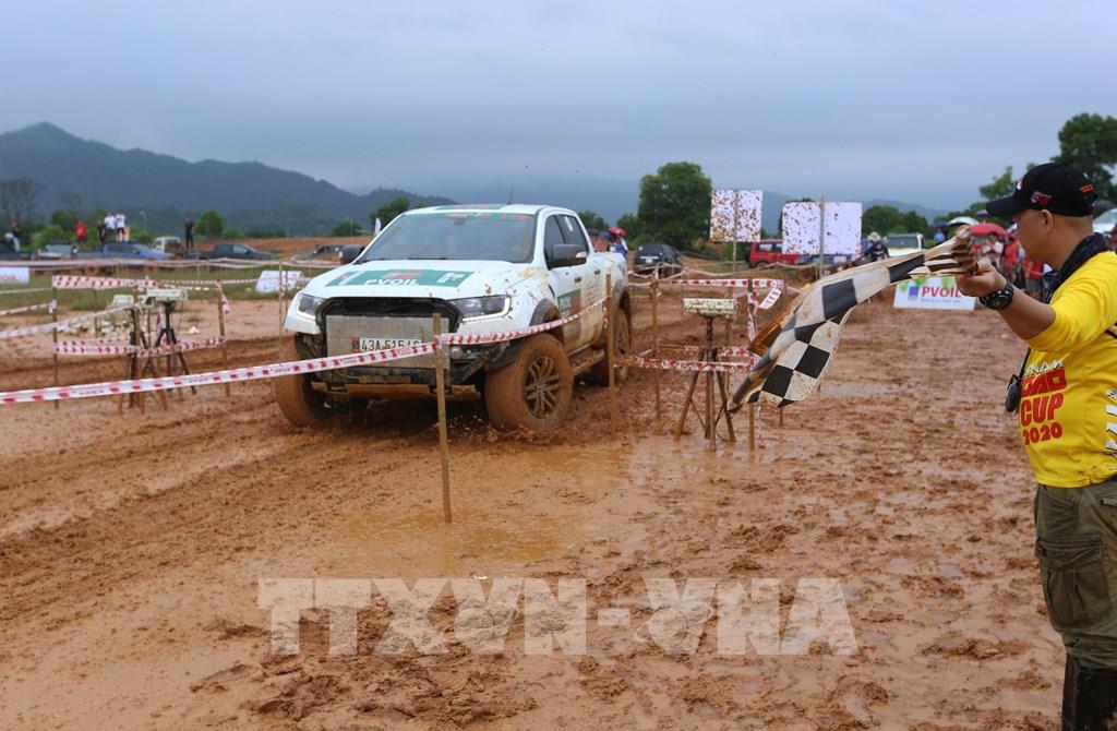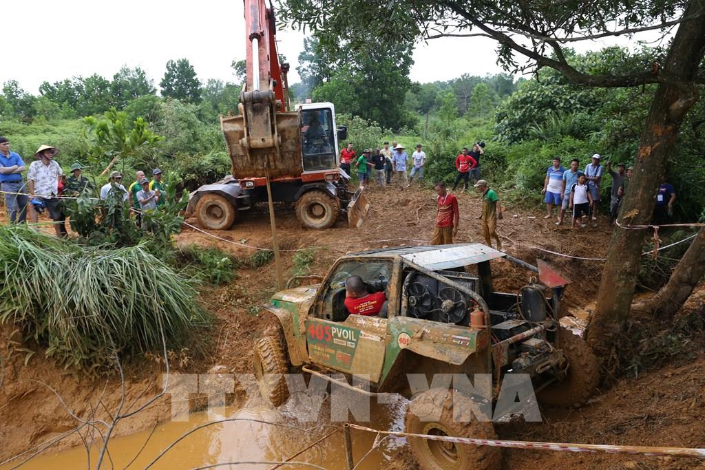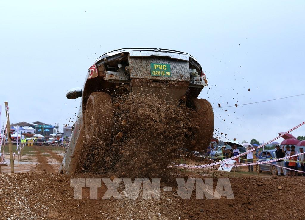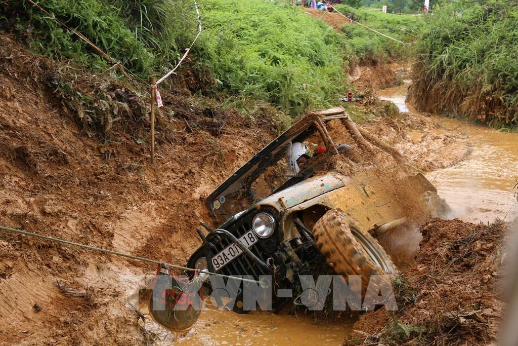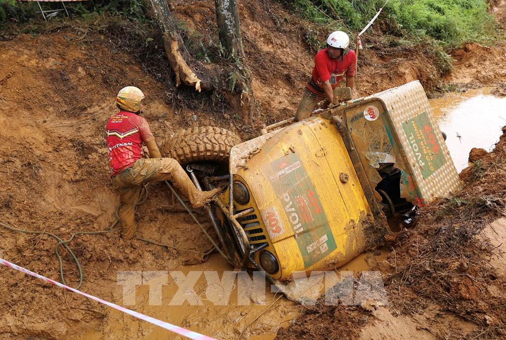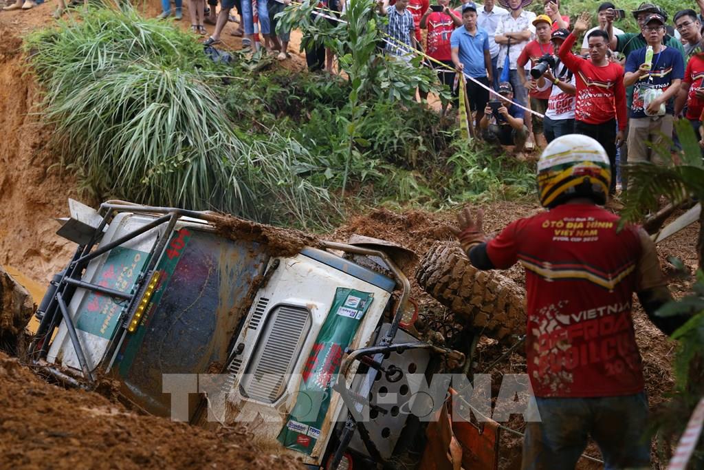 Đường đua lầy lội, trơn trượt gây rất nhiều khó khăn cho các đội tham dự. Ảnh: Hoàng Hiếu - TTXVN