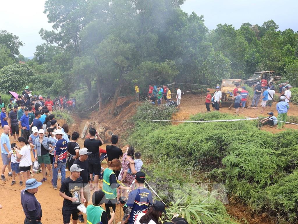 Đông đảo khán giả cổ vũ các đội đua vượt qua phần thi mở rộng vượt dốc cao tại đường đua “tử thần”(đường đua số 10). Ảnh: Hoàng Hiếu - TTXVN