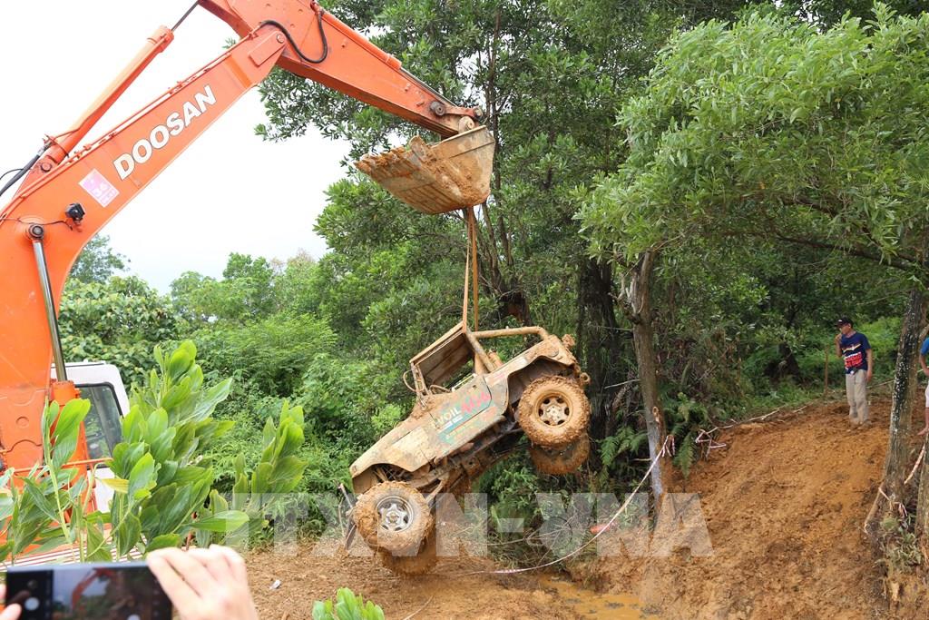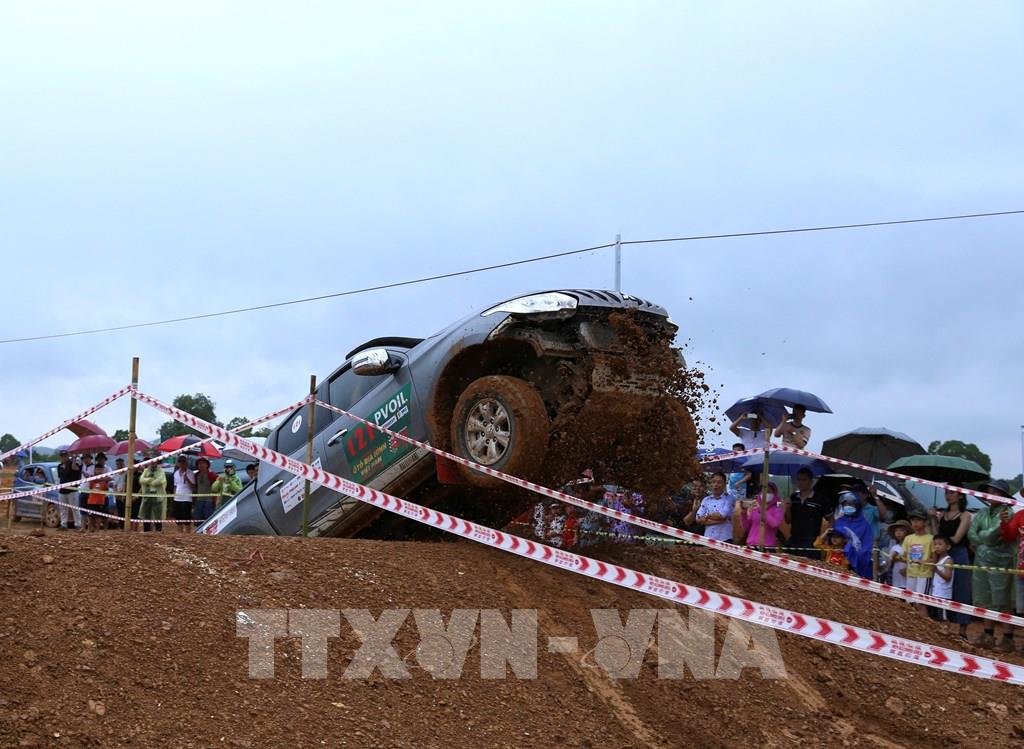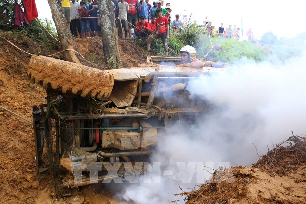 Một đội đua gặp sự cố khi vượt qua dốc cao. Ảnh: Hoàng Hiếu - TTXVN