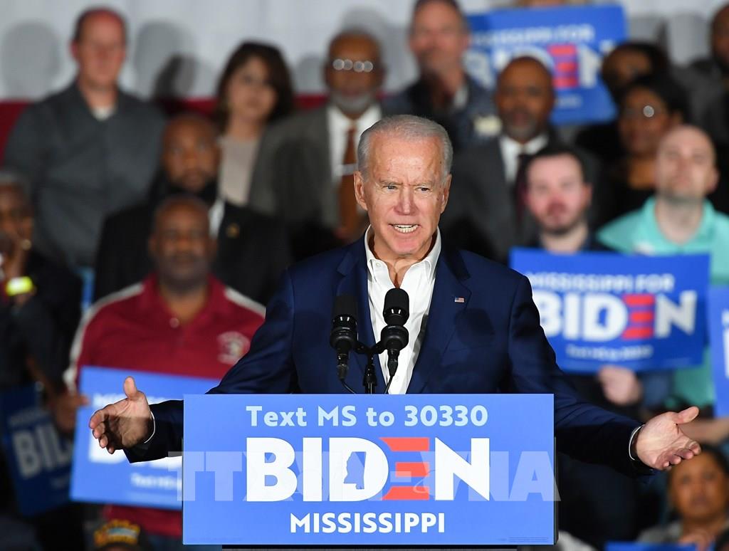 Ứng viên Tổng thống đảng Dân chủ Mỹ Joe Biden trong cuộc vận động tranh cử tại Tougaloo, Mississippi, ngày 8/3/2020. Ảnh: AFP/TTXVN