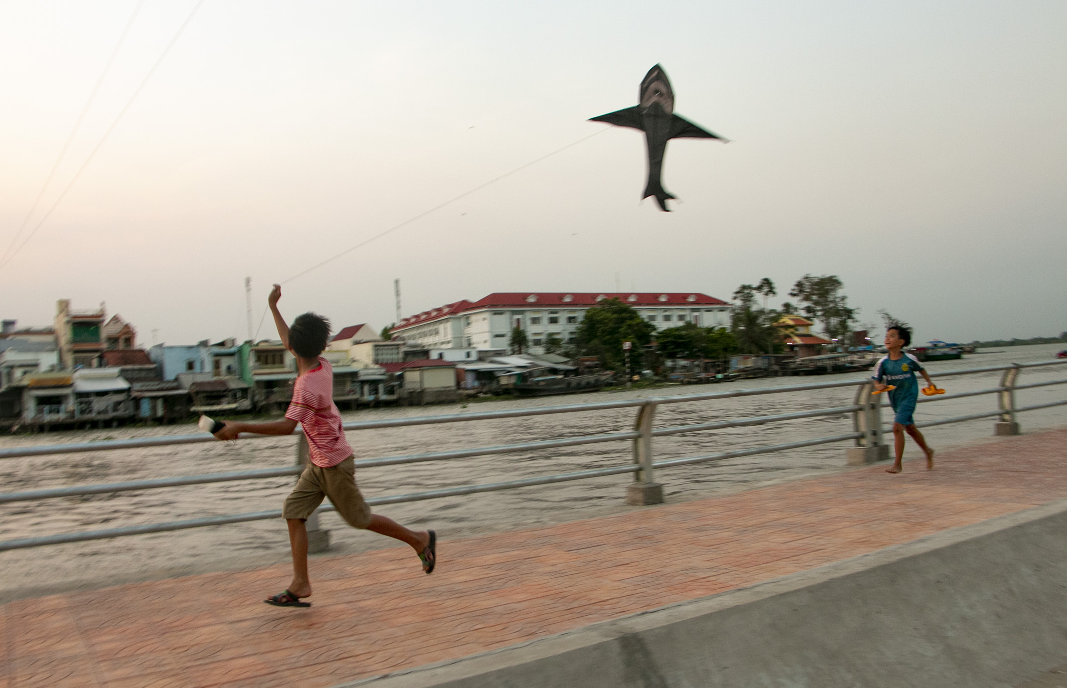 Hiện tại, các hộ dân ở vàm Thới An đã có thể yên tâm sinh sống như trước kia. Bờ kè cũng trở thành nơi vui chơi, thư giãn cho cả trẻ em và người lớn khu vực này vào mỗi buổi chiều. Ảnh: Thanh Liêm/TTXVN