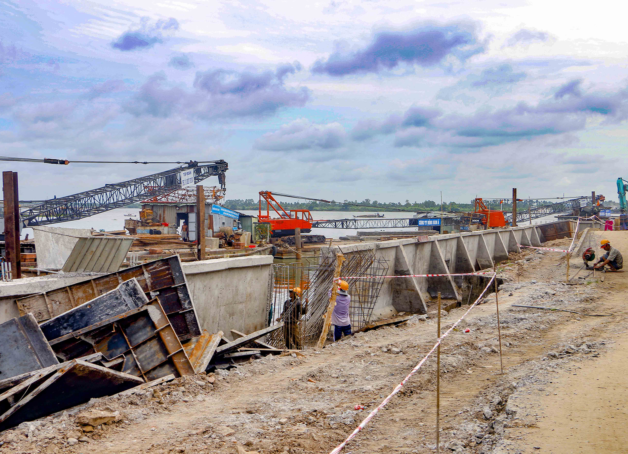 Nơi xảy ra sạt lở là khu vực đang thi công dự án kè chống sạt lở sông Ô Môn để khắc phục hậu quả của vụ sạt lở vào tháng 5 năm 2018, với kinh phí 45 tỷ đồng. Ảnh: Thanh Liêm/TTXVN