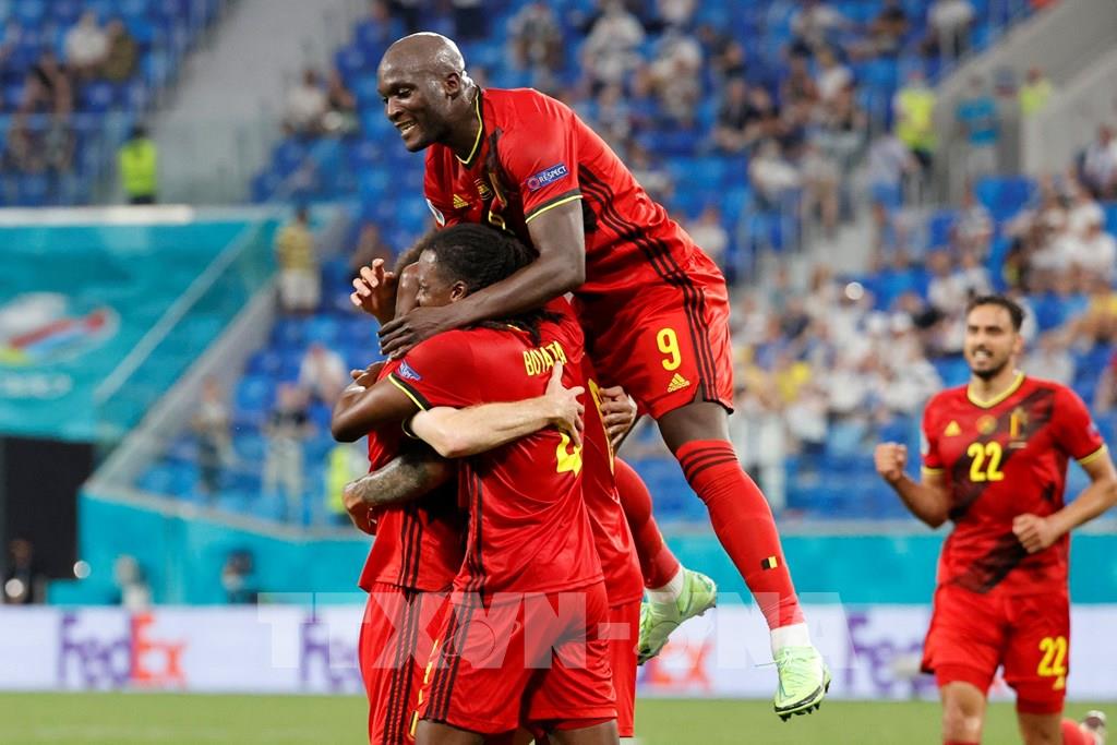 Tiền đạo Bỉ Romelu Lukaku (số 9) mừng bàn thắng ấn định tỷ số 2-0 cho đội nhà trước tuyển Phần Lan trong trận lượt cuối bảng B. Ảnh: AFP/TTXVN