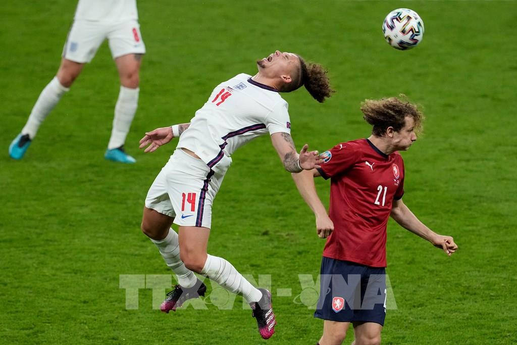 Pha tranh bóng quyết liệt của Kalvin Phillips (trái, đội tuyển Anh) với cầu thủ Alex Král (CH Séc). Ảnh: AFP/TTXVN