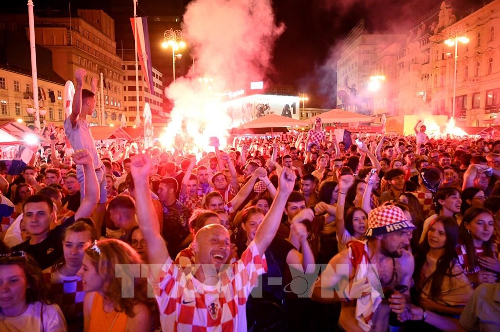 Niềm vui của cổ động viên Croatia ở quê nhà Zagreb khi đội nhà vượt qua Scotland để giành vé vào vòng 1/8 trong trận đấu lượt cuối bảng D. Ảnh: AFP/TTXVN