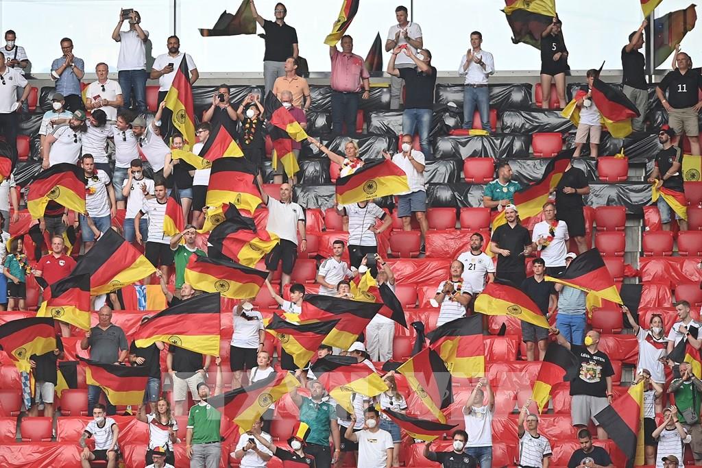 Cổ động viên Đức trong trận đối đầu giữa đội nhà với tuyển Bồ Đào Nha. Ảnh: AFP/TTXVN