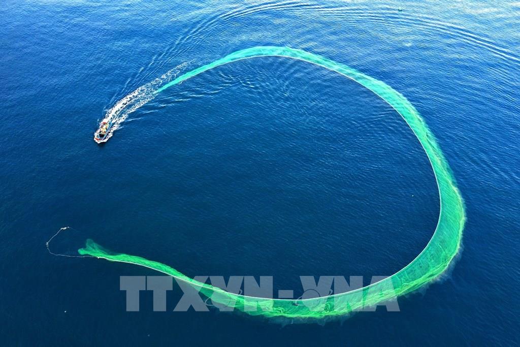 10:33' - 26/07/2022Từ tháng 5 đến tháng 8 hàng năm ngư dân ven biển Phú Yên lại hối hả chuẩn bị ngư cụ vươn khơi khai thác cá cơm, loại cá được người dân ưa chuộng để làm thực phẩm khô hoặc sản xuất nước mắm truyền thống ở các vùng biển trong tỉnh. Thời điểm này, nước biển ở Phú Yên trong, xanh ngắt, những tấm lưới vây cá cơm của ngư dân thả xuống biển tạo thành những hình ảnh đẹp mê đắm khi nhìn từ trên cao.
