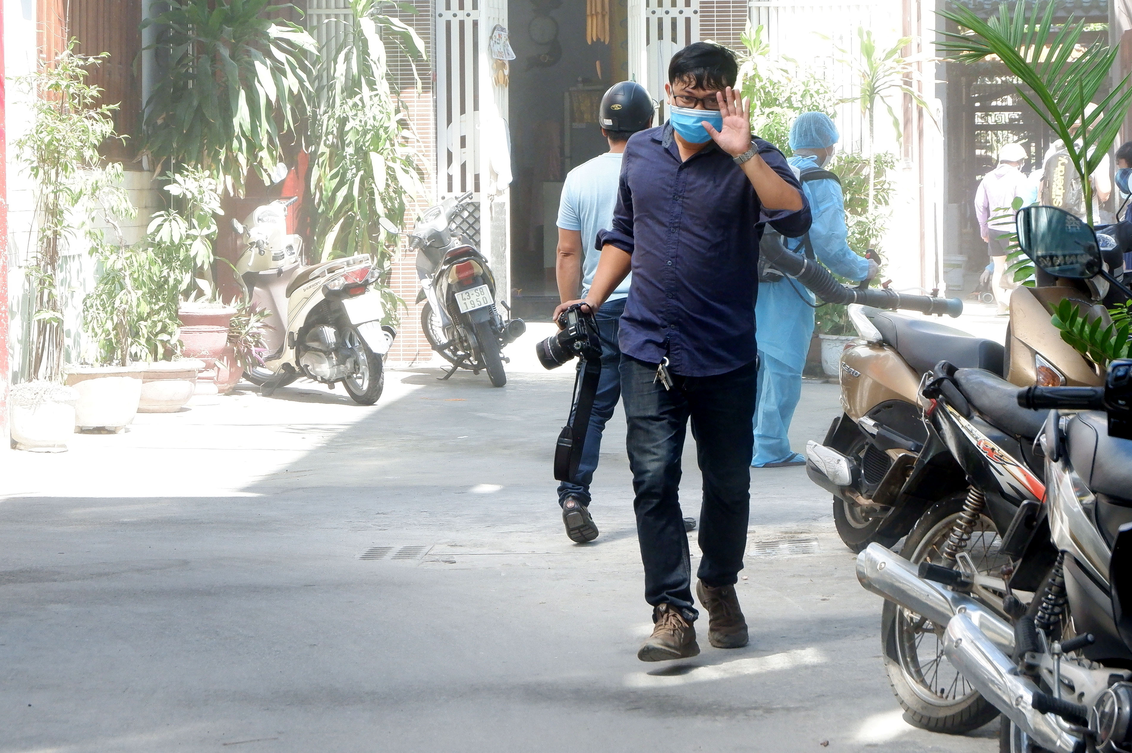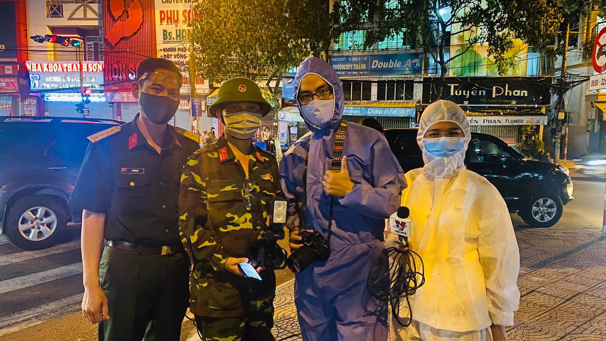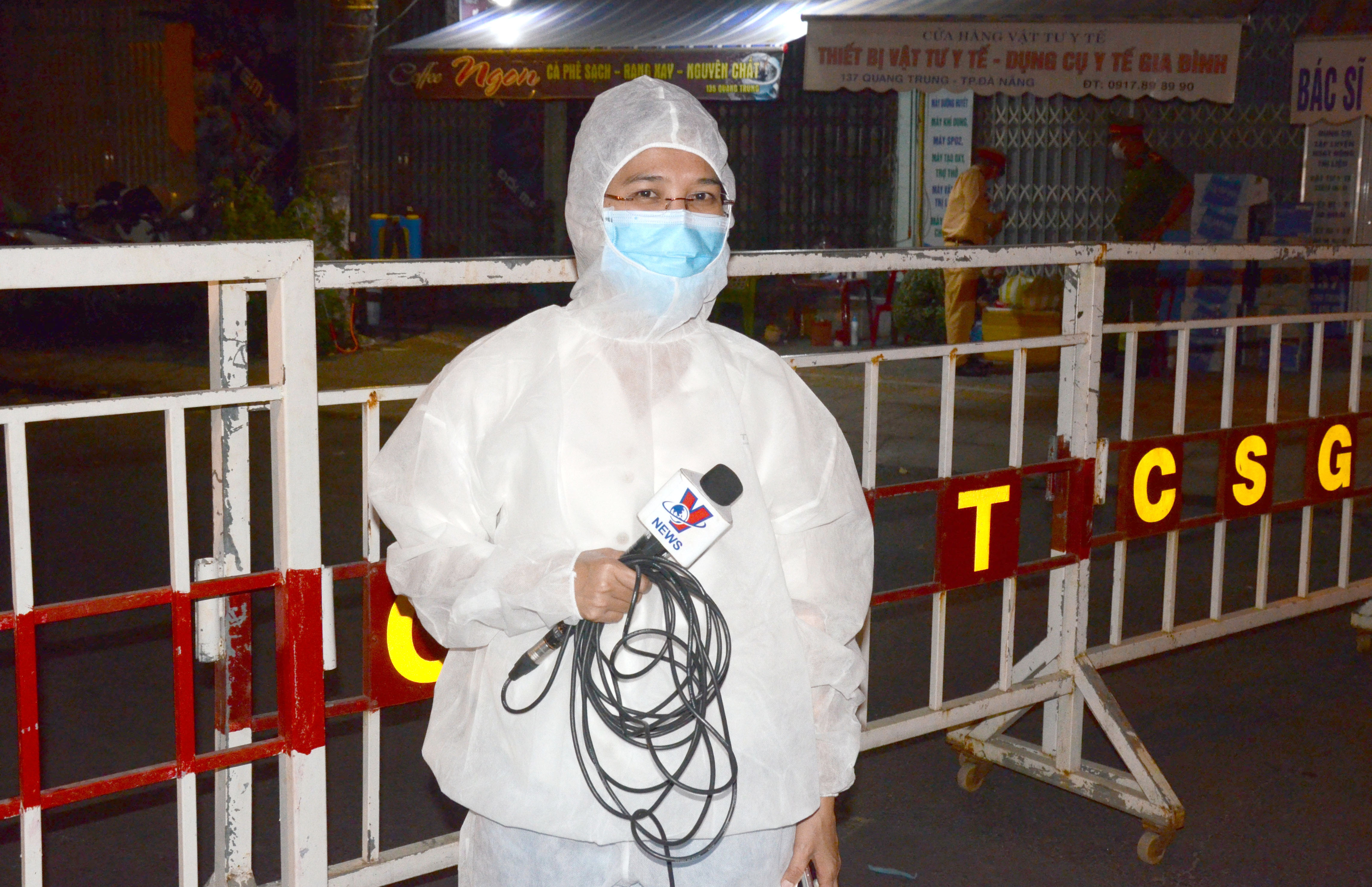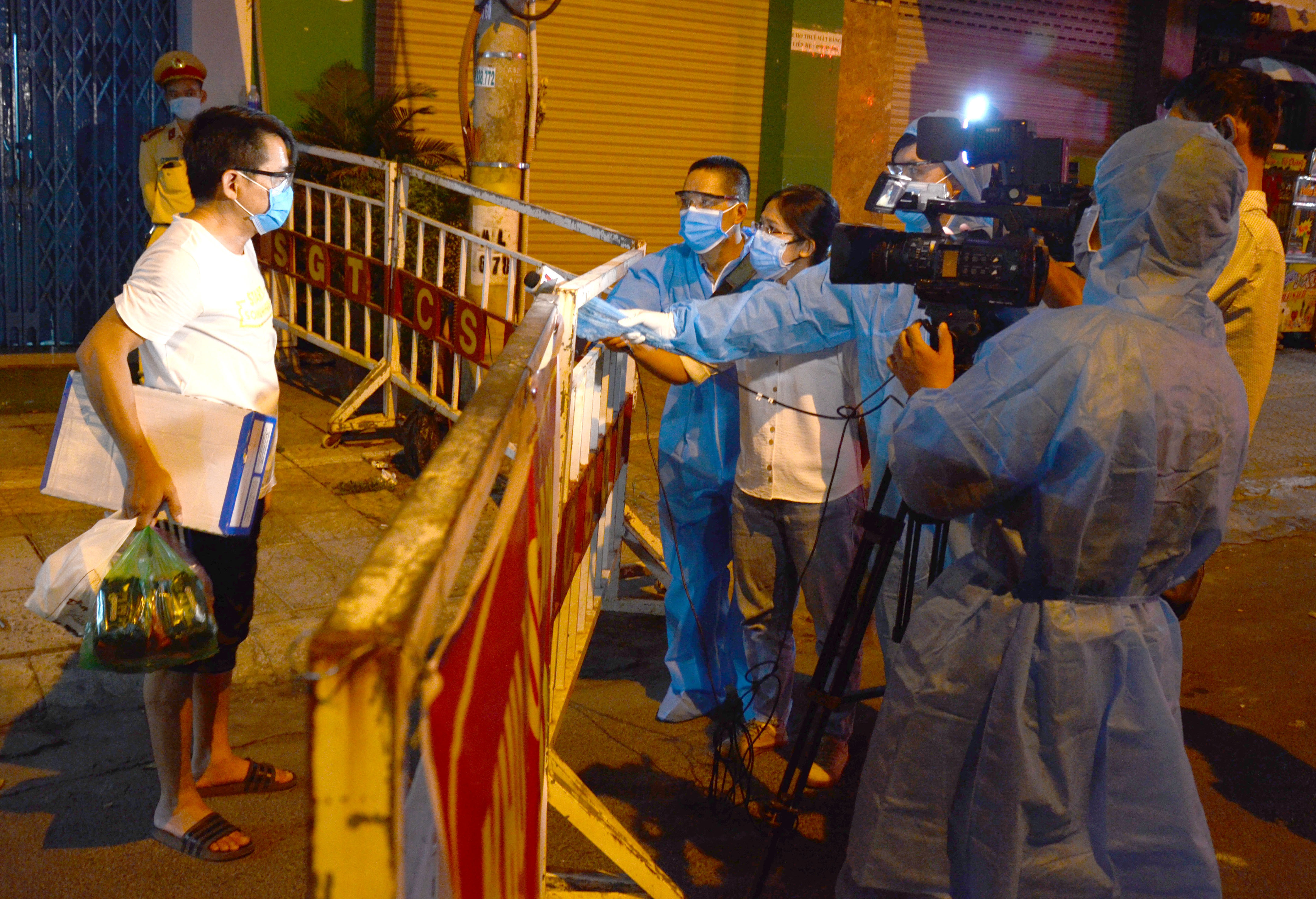 Phóng viên đi theo Tổ chống dịch Cộng đồng phường Hòa Khánh Bắc (quận Liên Chiểu, thành phố Đà Nẵng). Ảnh: Quốc Dũng - TTXVN