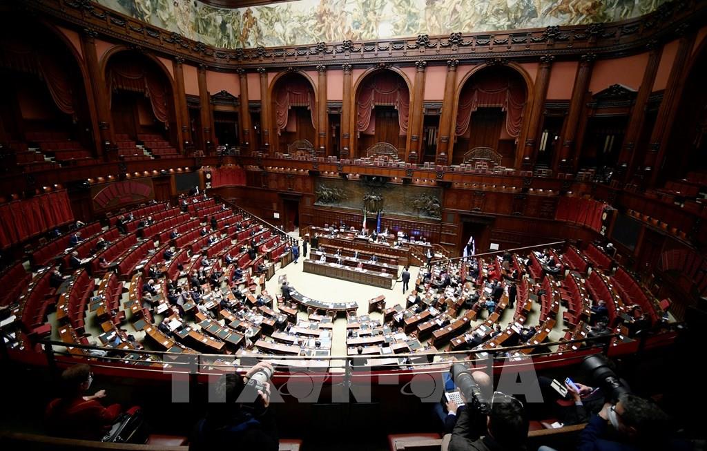 Ngày 18/2/2021, với 535 phiếu ủng hộ, 56 phiếu chống và 5 phiếu trắng, Hạ viện Italy đã tín nhiệm thông qua Chính phủ của Thủ tướng Mario Draghi. Ảnh: AFP/TTXVN