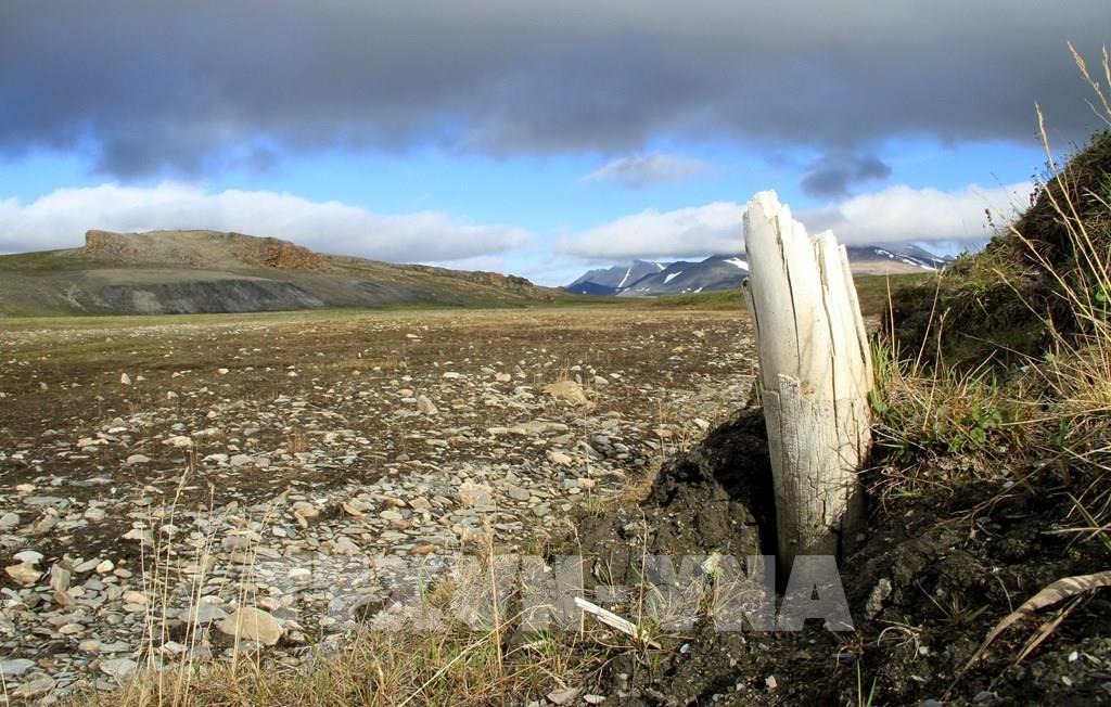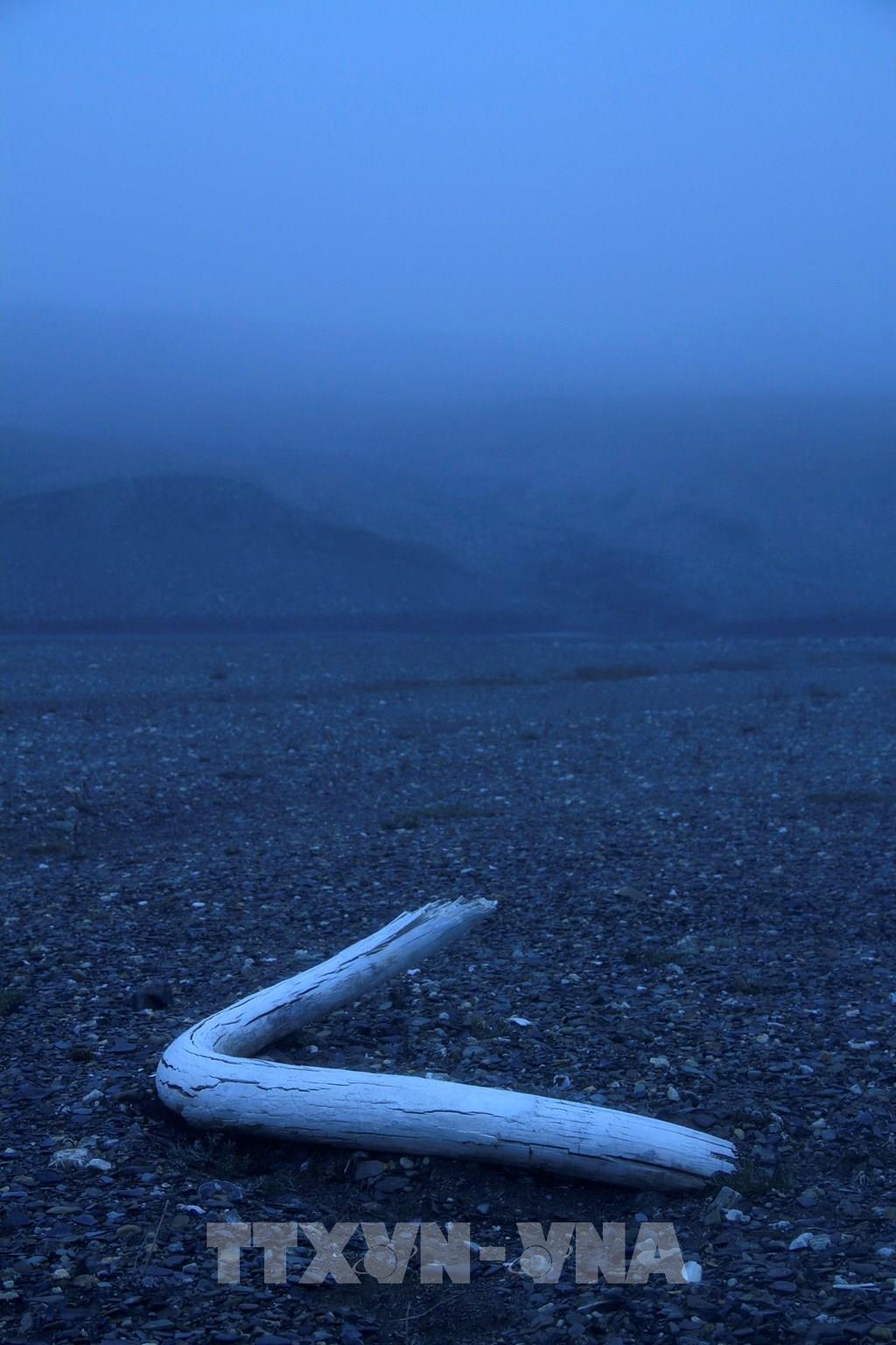 Ngà của một con voi ma mút lông xoăn được phát hiện tại đảo Wrangel năm 2017. Ảnh: AFP/TTXVN