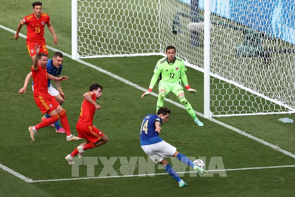Sau hơn 10 ngày diễn ra, vòng bảng EURO 2020 đã khép lại với nhiều cảm xúc khó quên và sự tỏa sáng của không ít cầu thủ. Trong số đó, không chỉ có những ngôi sao lớn mà còn có cả những gương mặt ít tên tuổi đang thể hiện ấn tượng trên sân khấu lớn nhất của bóng đá châu Âu. Trong ảnh: Tiền vệ Italy Federico Chiesa (số 14) thực hiện sút bóng về phía khung thành Xứ Wales trong trận lượt cuối bảng A. Ảnh: AFP/TTXVN