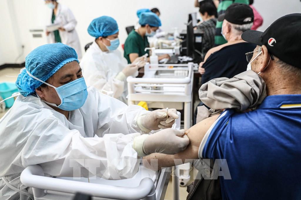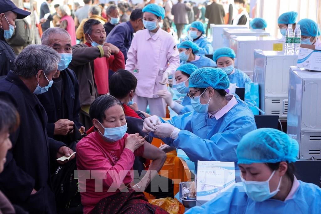 Theo dữ liệu do Ủy ban Y tế quốc gia Trung Quốc công bố, tính đến hết ngày 19/6/2021, Trung Quốc đã tiêm được hơn 1,01 tỷ liều vaccine COVID-19, chiếm gần 40% trong tổng số 2,5 tỷ mũi vaccine COVID-19 đã sử dụng trên toàn cầu. Trong ảnh: Nhân viên y tế tiêm vaccine phòng COVID-19 cho người dân tại Thẩm Dương, tỉnh Liêu Ninh, Trung Quốc, ngày 21/5/2021. Ảnh: AFP/ TTXVN