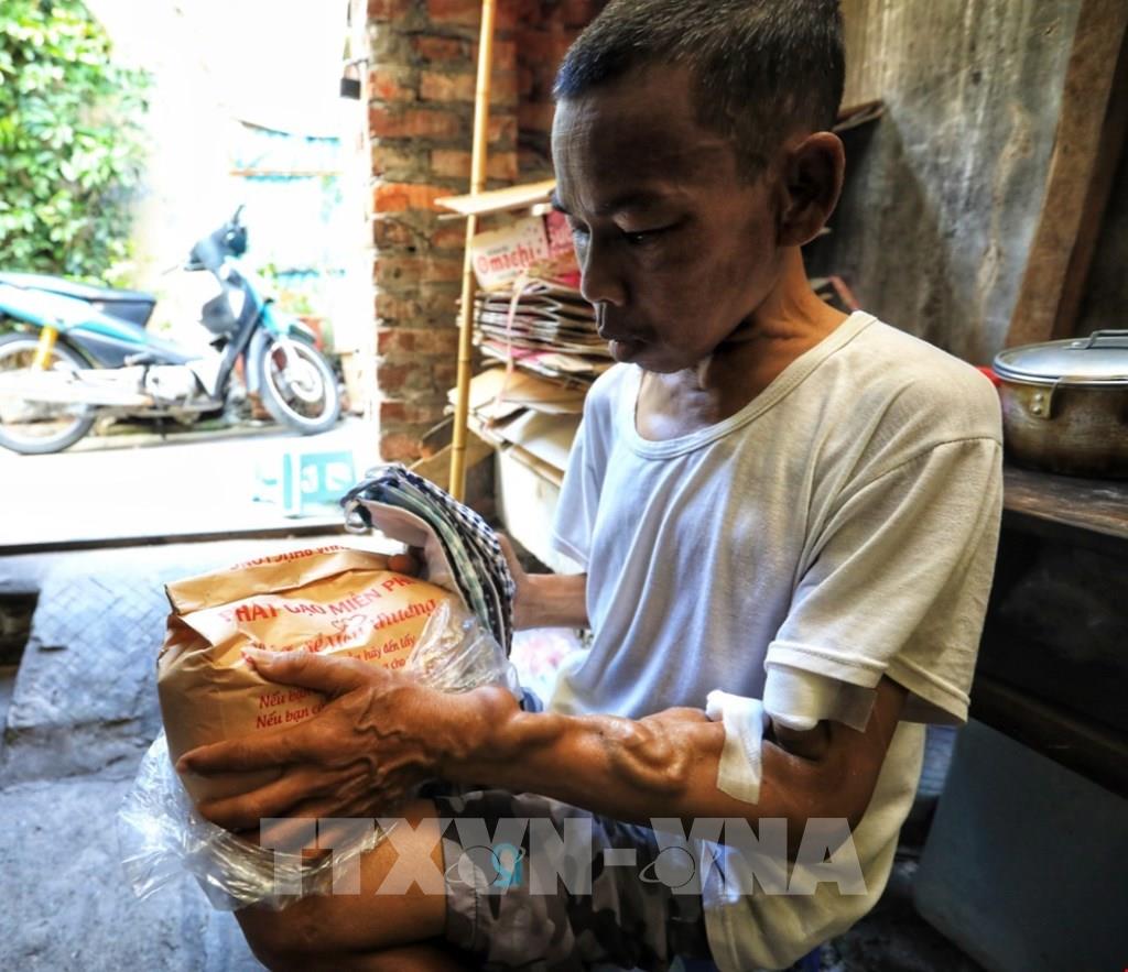 Dịch bệnh khiến người dân "xóm chạy thận" lâm vào khó khăn, nhận được sự quan tâm từ cộng đồng khiến họ vô cùng cảm động. Ảnh: Thành Đạt - TTXVN