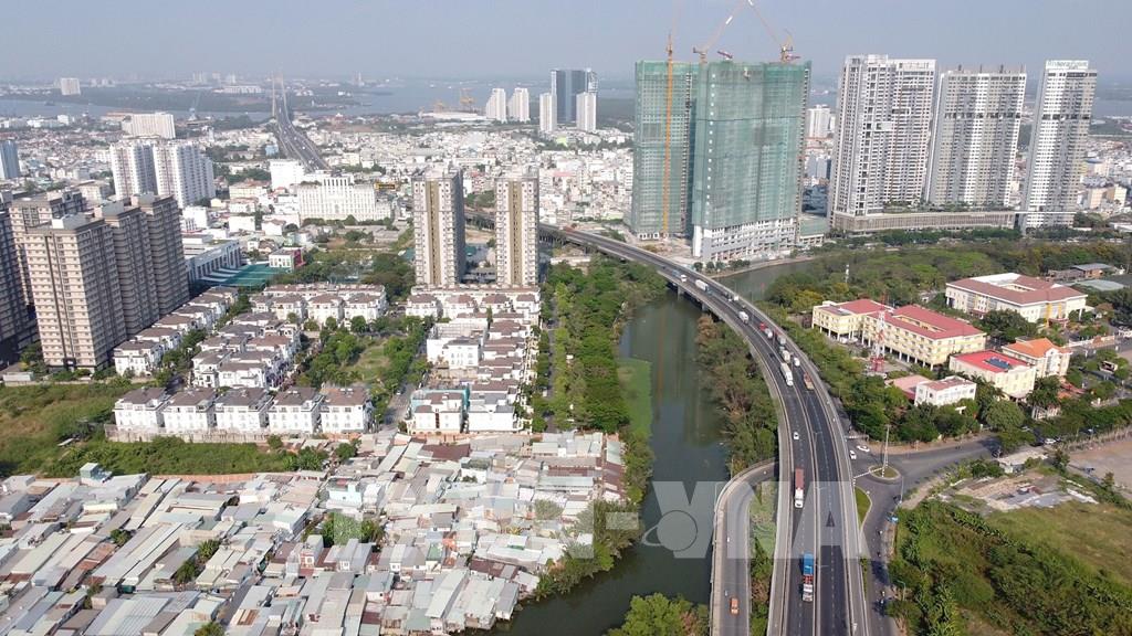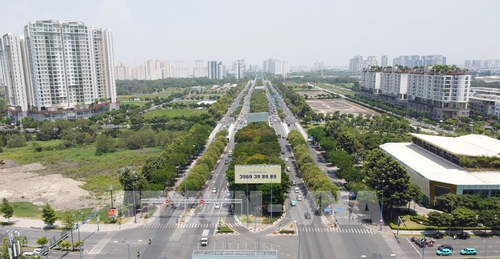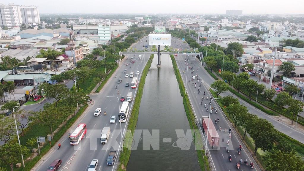 Toàn tuyến Đại lộ Võ Văn Kiệt chạy dọc theo kênh Bến Nghè - Tàu Hủ, TP. Hồ Chí Minh. Ảnh: Thanh Vũ-TTXVN