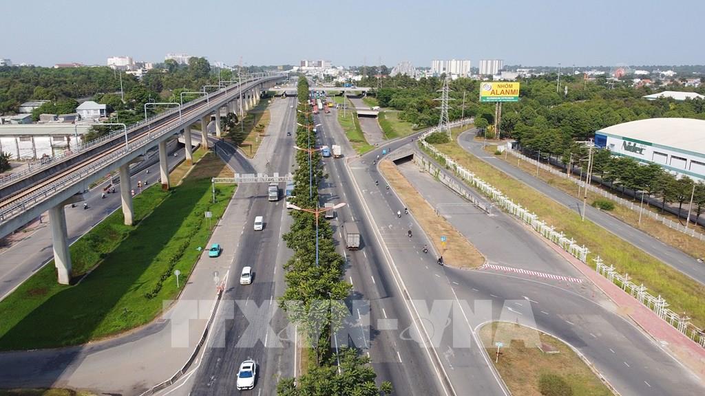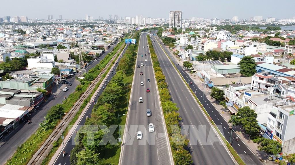 Đại lộ Võ Nguyên Giáp (thành phố Thủ Đức, TP. Hồ Chí Minh) dài 7,79km, có quy mô 10 làn xe, kết nối cầu Sài Gòn với Xa lộ Hà Nội đi tỉnh Bình Dương, Đồng Nai và các khu vực miền Đông Nam Bộ, Tây Nguyên. Ảnh: Trung Tuyến-TTXVN