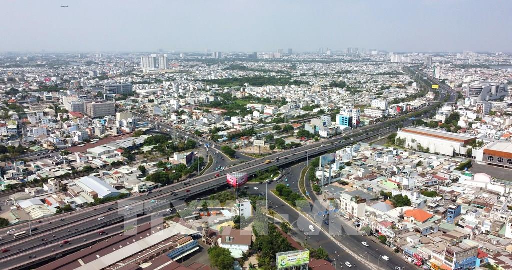 Đại lộ Phạm Văn Đồng thông xe năm 2013 dài 13,6 km với 12 làn nối từ sân bay Tân Sơn Nhất đến quốc lộ 1A và quốc lộ 1K, tạo ra hướng giao thông mới qua các quận Tân Bình, Gò Vấp, Bình Thạnh, Thủ Đức và tỉnh Bình Dương, Đồng Nai. Ảnh: Trung Tuyến-TTXVN