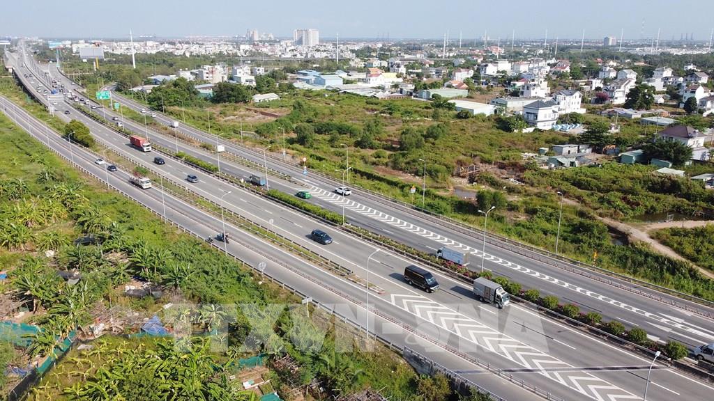 Tuyến đường cao tốc TP. Hồ Chí Minh - Long Thành - Dầu Giây kết nối trực tiếp Thành phố với tỉnh Đồng Nai và Bà Rịa- Vũng Tàu dài 55,7 km km với 4 làn xe và 2 làn khẩn cấp. Ảnh: Thanh Vũ-TTXVN