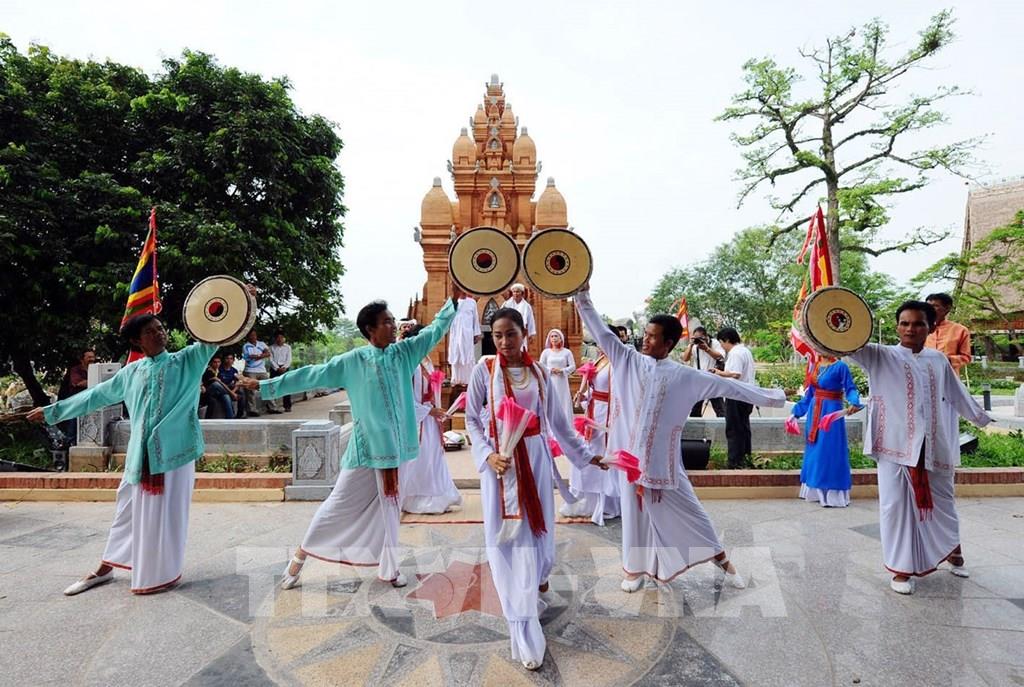 Với những lợi thế vốn có từ tài nguyên du lịch tự nhiên, tài nguyên du lịch nhân văn phong phú đa dạng, Ninh Thuận nổi tiếng bởi hệ thống các tháp Chăm còn nguyên vẹn cả về kiến trúc, nghệ thuật điêu khắc được gìn giữ cho tới ngày nay. Năm 2019, Ninh Thuận triển khai việc lập và trình UNESCO công nhận Lễ hội Katê là Di sản văn hóa phi vật thể đại diện của nhân loại. Trong ảnh: Lễ hội văn hoá truyền thống của đồng bào dân tộc Chăm tỉnh Ninh Thuận. Ảnh: Thanh Hà - TTXVN