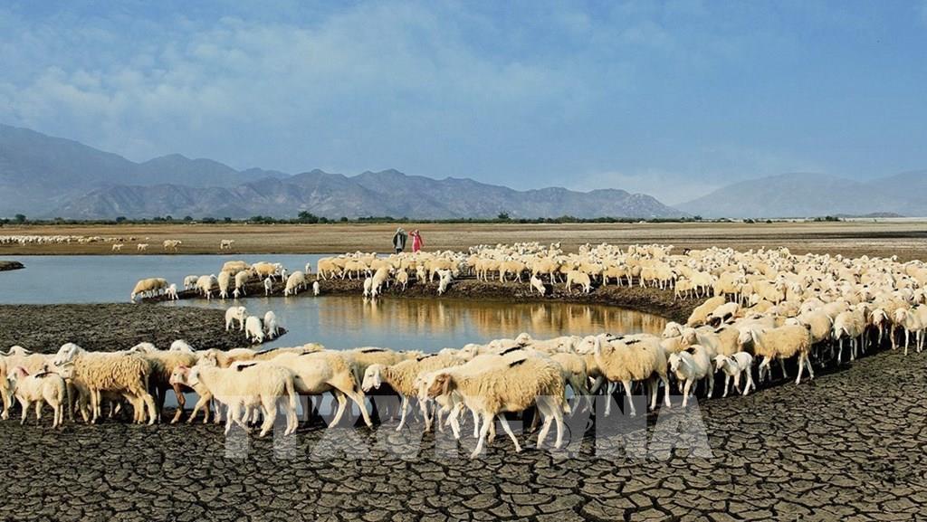Ninh Thuận là tỉnh có đàn cừu lớn nhất nước với gần 117.000 con. Để phát huy thế mạnh này, tỉnh tập trung đẩy mạnh các chương trình hỗ trợ, chuyển giao tiến bộ khoa học kỹ thuật, phát triển chăn nuôi theo hướng công nghiệp bền vững để tăng năng suất và giá trị sản phẩm. Ảnh: Công Thử - TTXVN