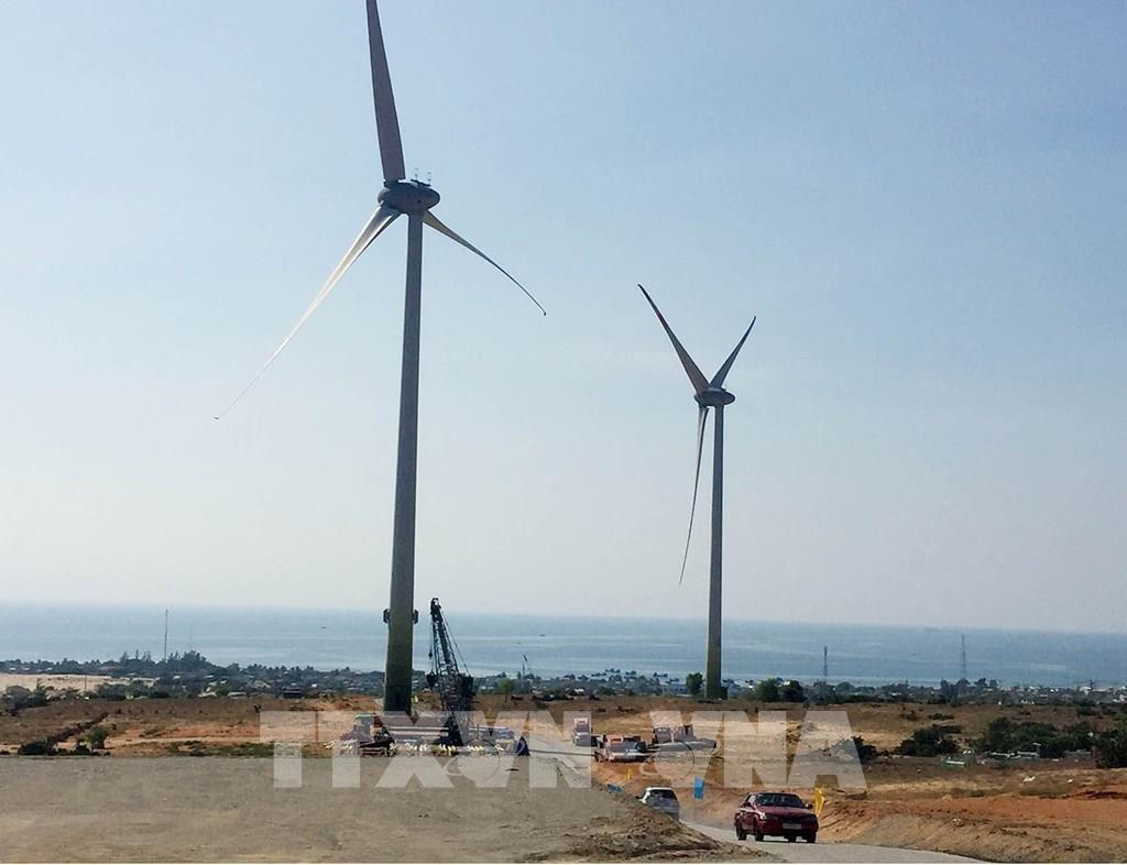 Ninh Thuận đã cấp quyết định chủ trương đầu tư cho 13 dự án điện gió, tổng công suất 678,33MW; đã có 3 dự án đưa vào vận hành thương mại với tổng công suất 181MW. Trong ảnh: Nhà máy điện gió Mũi Dinh (xã Phước Dinh, huyện Thuận Nam, Ninh Thuận) khánh thành ngày 10/4/2019, công suất giai đoạn 1 là 37,6 MW, với tổng mức đầu tư 1.472 tỷ đồng, đóng góp hằng năm 100 triệu Kwh năng lượng sạch vào lưới điện quốc gia. Ảnh: Công Thử - TTXVN