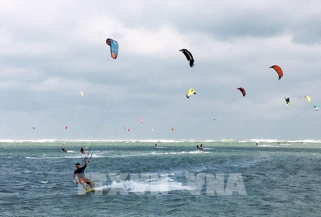 Ninh Thuận là tỉnh có tốc độ gió lớn nhất Việt Nam (khoảng 7,5m/s) và một bờ biển dài hơn 100km, là cơ sở để phát triển các môn thể thao dưới nước thú vị như đua thuyền, lướt sóng hay những loại hình khai thác đại dương. Trong ảnh: Tổ hợp giải trí thể thao tuyết Ski Ninh Chữ Bay lớn thứ 3 thế giới với diện tích lên tới 8.000 m2 cùng chuỗi tiện ích - dịch vụ hiếm có, hàng loạt khu trình diễn nghệ thuật, hoạt động chiếu phim bãi biển… mang đến những trải nghiệm khó quên cho du khách trong mỗi chuyến đi. Ảnh: Công Thử - TTXVN