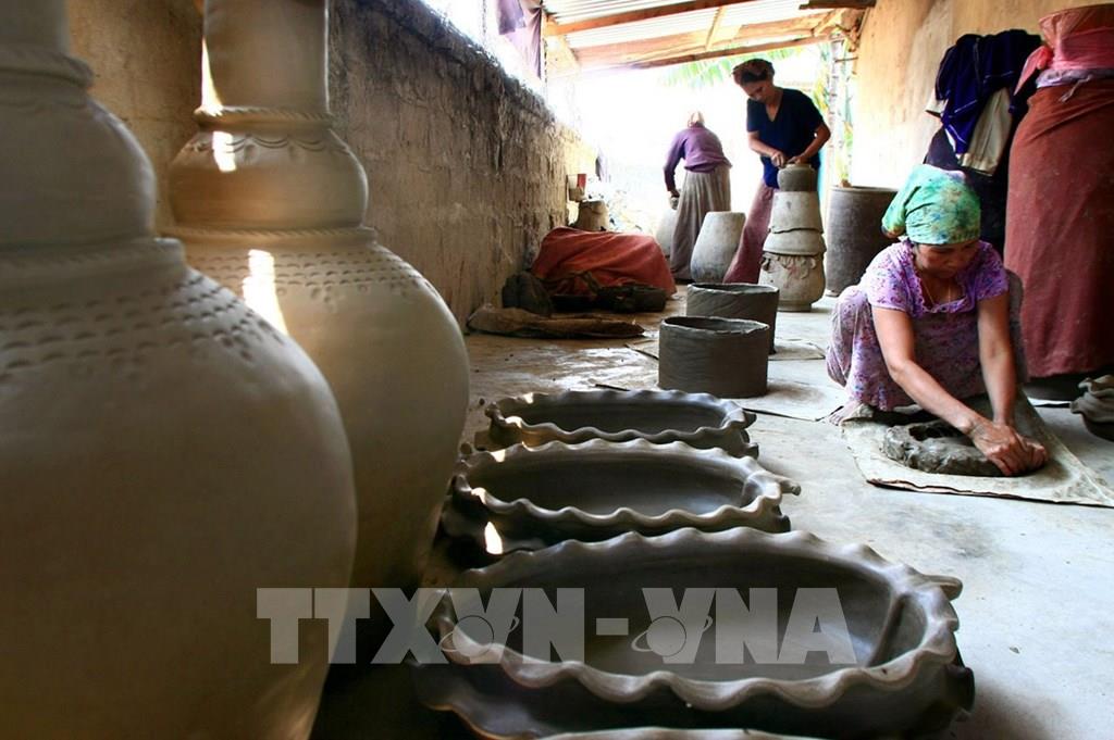 Làng gốm cổ Bàu Trúc (thị trấn Phước Dân, huyện Ninh Phước) được xem như một bảo tàng sống về nghề gốm truyền thống của người Chăm tỉnh Ninh Thuận với gần 8 thế kỷ hình thành và phát triển. Nghệ thuật làm gốm của người Chăm Bàu Trúc được công nhận Di sản văn hóa phi vật thể quốc gia (năm 2017) và cũng đã trình UNESCO công nhận là Di sản văn hóa phi vật thể đại diện của nhân loại cần phải bảo vệ khẩn cấp. Ảnh: Huy Hùng - TTXVN