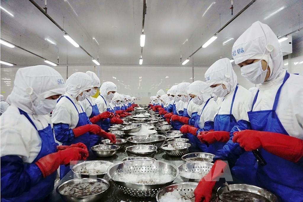 Nông nghiệp của Ninh Thuận có bước chuyển mình vượt trội khi vươn mình ra “sân chơi” quốc tế. Ninh Thuận đã xuất khẩu lô tôm đông lạnh đầu tiên sang một số nước châu Âu theo Hiệp định EVFTA. Trong ảnh: Chế biến tôm đông lạnh xuất khẩu sang thị trường Châu Âu theo Hiệp định EVFTA tại nhà máy của Công ty TNHH Thông Thuận trong Khu công nghiệp Thành Hải, thành phố Phan Rang - Tháp Chàm (Ninh Thuận). Ảnh: Công Thử - TTXVN
