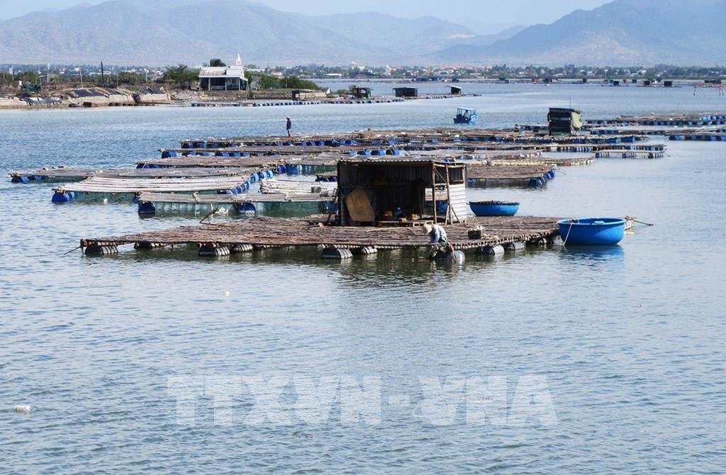 Với chủ trương tiếp tục khai thác và phát huy thế mạnh kinh tế thủy sản, giai đoạn 2020 - 2025, Ninh Thuận đặt mục tiêu tốc độ tăng trưởng giá trị sản xuất thủy sản bình quân đạt 2-3%/năm và thủy sản chiếm 51-52% trong cơ cấu ngành nông nghiệp. Trong ảnh: Mô hình nuôi hàu Thái Bình Dương treo dây trên bè nổi khu vực Đầm Nại, huyện Ninh Hải. Ảnh: Nguyễn Thành – TTXVN