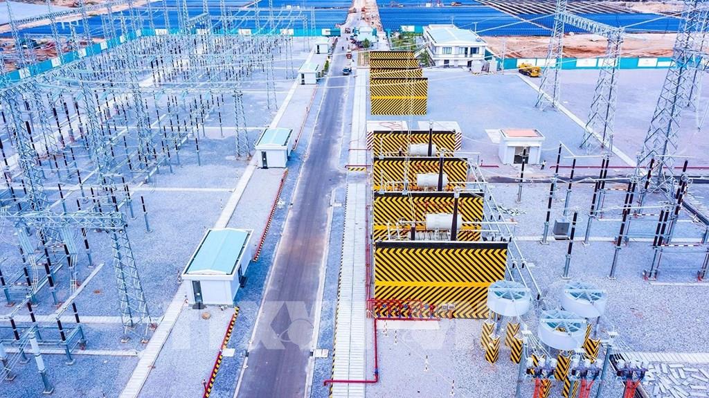 Những năm qua, Ninh Thuận đã thu hút được hơn 50.000 tỷ đồng vào lĩnh vực năng lượng tái tạo. Trong ảnh: Ngày 29/9/2020, Tập đoàn Trung Nam (Trungnam Group) hoàn tất đóng điện Trạm biến áp và đường dây 220/500kV kết hợp Nhà máy điện mặt trời Trung Nam Thuận Nam công suất 450 MW tại thôn Quán Thẻ, xã Phước Minh, huyện Thuận Nam. Ảnh: Công Thử - TTXVN