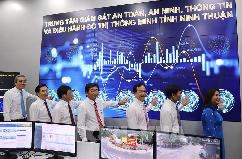 Chiều 23/10/2020, tỉnh Ninh Thuận khai trương Trung tâm Giám sát, điều hành đô thị thông minh IOC - Intelligent Operations Center, đánh dấu bước phát triển mới của Ninh Thuận trong nỗ lực thực hiện mục tiêu xây dựng chính quyền điện tử, đô thị thông minh nhằm nâng cao chất lượng phục vụ người dân, nâng cao hiệu quả hoạt động của cơ quan Nhà nước. Ảnh: Nguyễn Thành – TTXVN