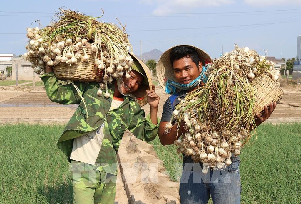 Sản phẩm tỏi Phan Rang của Ninh Thuận được Cục Sở hữu trí tuệ (Bộ Khoa học và Công nghệ) cấp văn bằng bảo hộ Nhãn hiệu tập thể. Giống tỏi đặc sản này được trồng tập trung chủ yếu ở các huyện Ninh Hải, Thuận Bắc và thành phố Phan Rang - Tháp Chàm. Ảnh: Nguyễn Thành – TTXVN