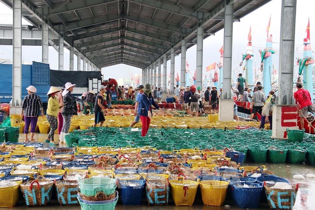 5 năm trở lại đây, Ninh Thuận đã có bước phát triển đột phá trong nhiều lĩnh vực. Tốc độ tăng GRDP bình quân đạt 10,2%/năm; GRDP bình quân đạt 60,1 triệu đồng/người, tăng 2,17 lần so với năm 2015. Trong ảnh: Hoạt động mua, bán tấp nập tại cảng cá Cà Ná, huyện Thuận Nam. Ảnh: Công Thử - TTXVN