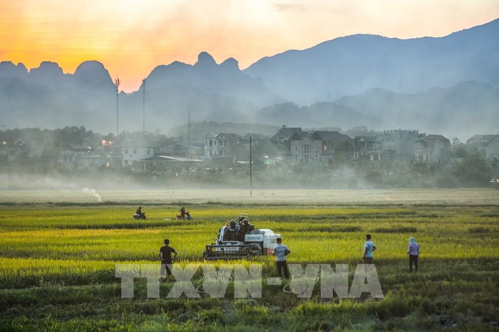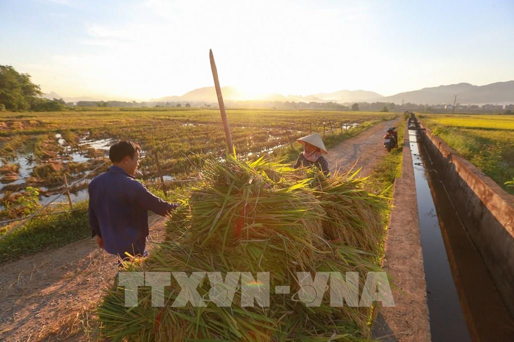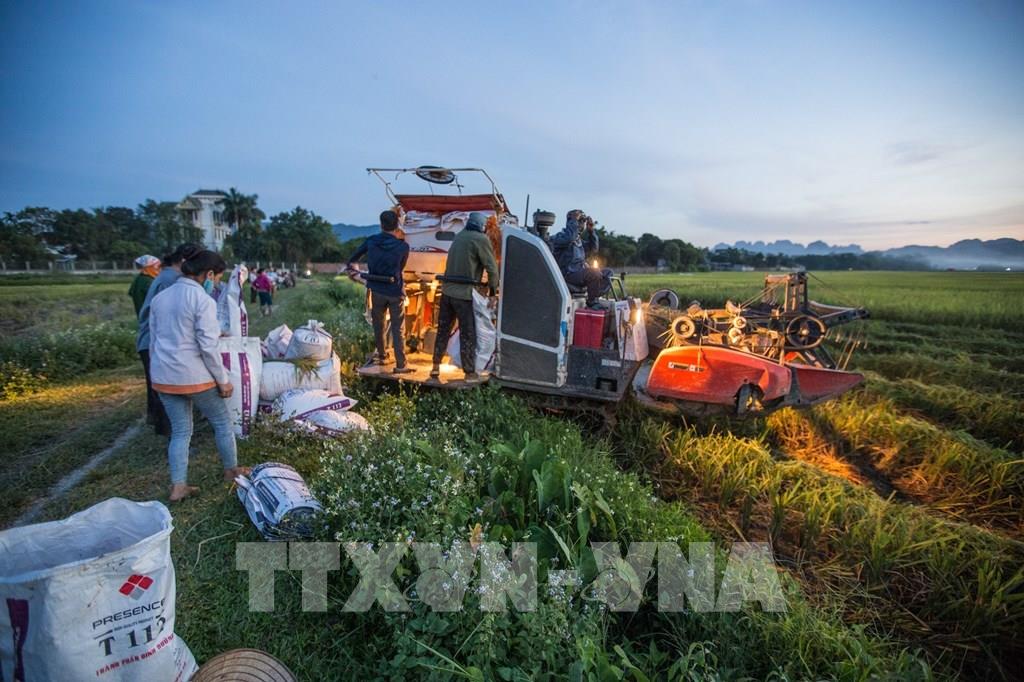 Nông dân hối hả xuống đồng thu hoạch lúa vụ Xuân 2021