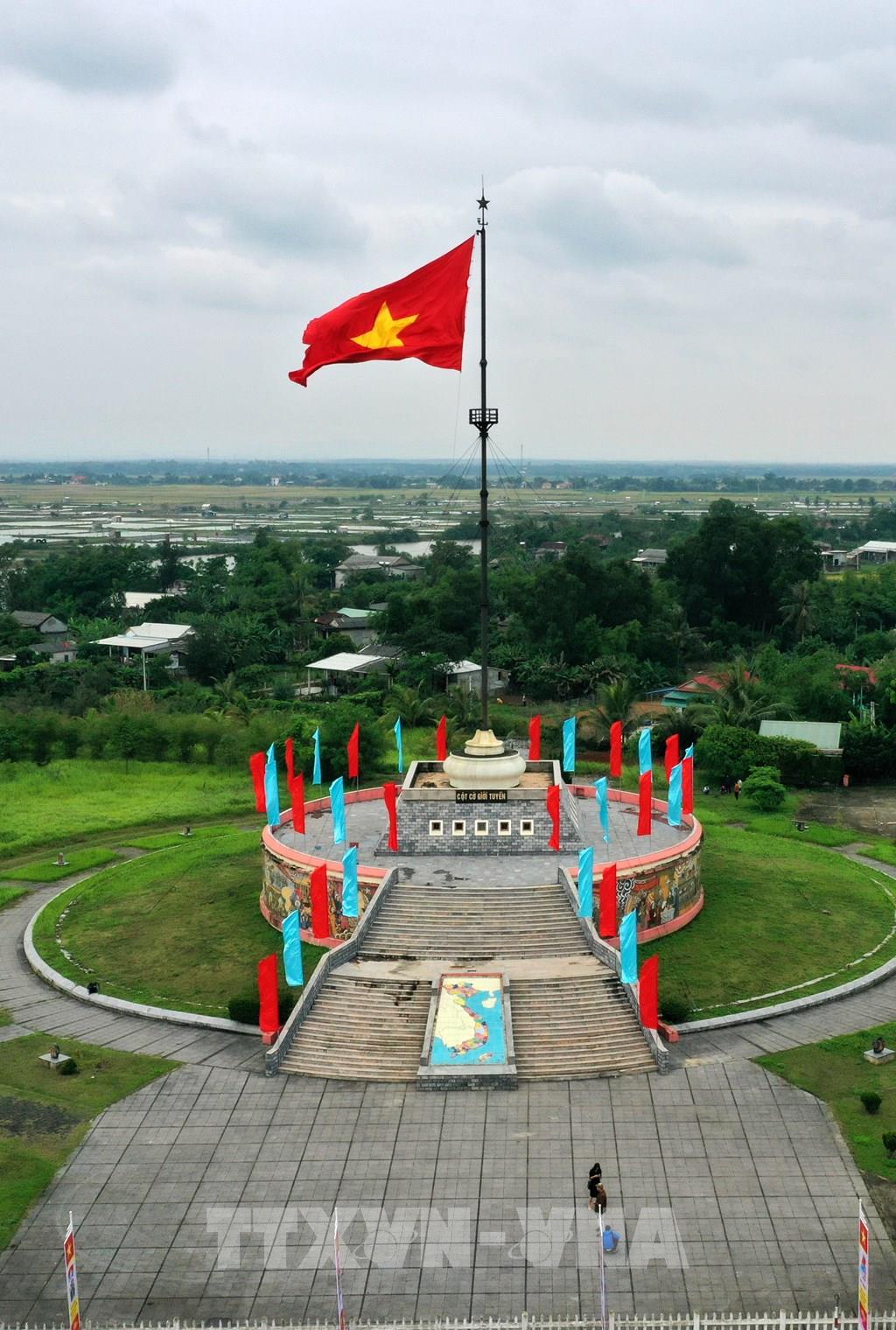 Cột cờ Hiền Lương hiện tại được xây dựng theo nguyên mẫu hoàn chỉnh nhất (xây dựng từ năm 1963) với chiều cao 38 m, trong đó phần đài cao 11,5 m. Cụm di tích đôi bờ Hiền Lương - Bến Hải đã được Bộ Văn hóa thể thao và du lịch xếp hạng quốc gia ngày 12/12/1986; Thủ tướng Chính phủ xếp hạng di tích quốc gia đặc biệt ngày 9/12/2013. Ảnh: Hồ Cầu - TTXVN