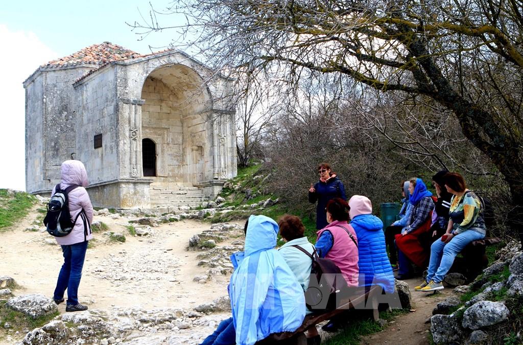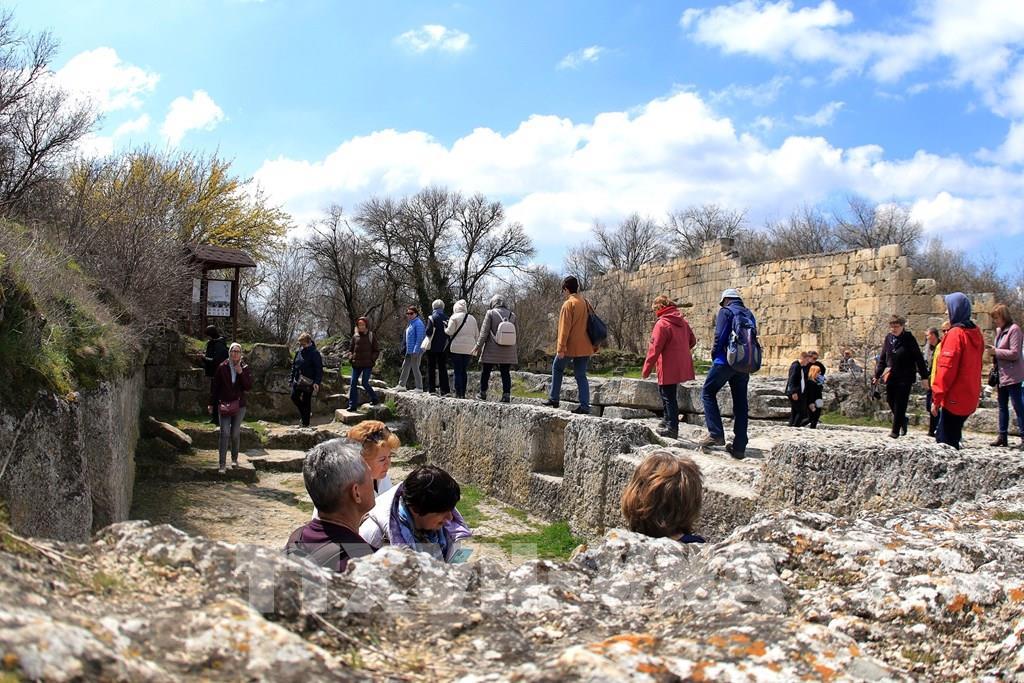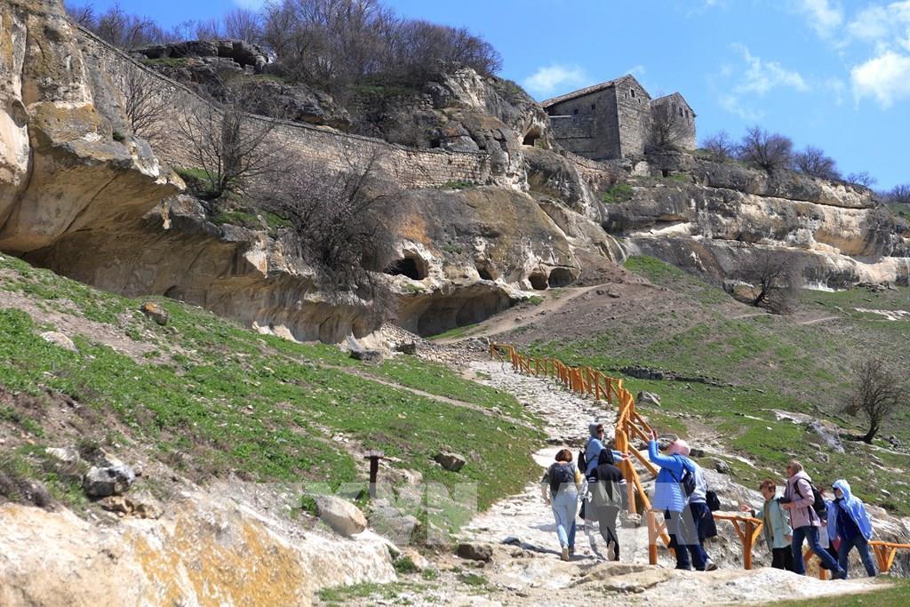 Du khách tham quan pháo đài Chufut-Kale. Ảnh: Trần Hiếu - PV TTXVN tại Nga