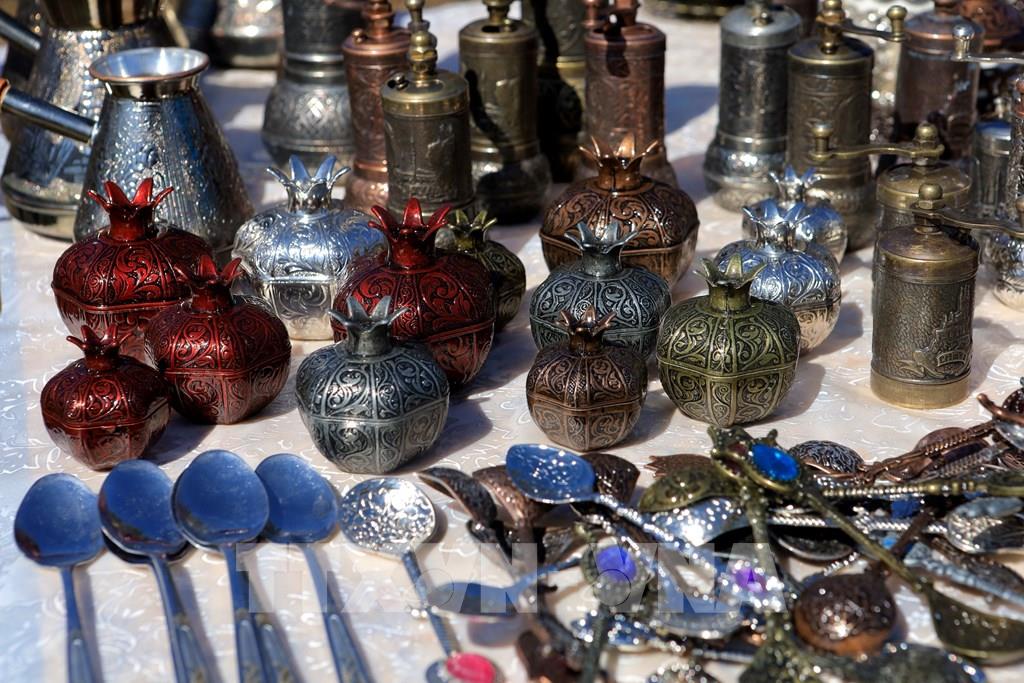 Những đồ lưu niệm độc đáo của người Tartar Crimea được bày bán cho du khách tham quan pháo đài Chufut-Kale. Ảnh: Trần Hiếu - PV TTXVN tại Nga